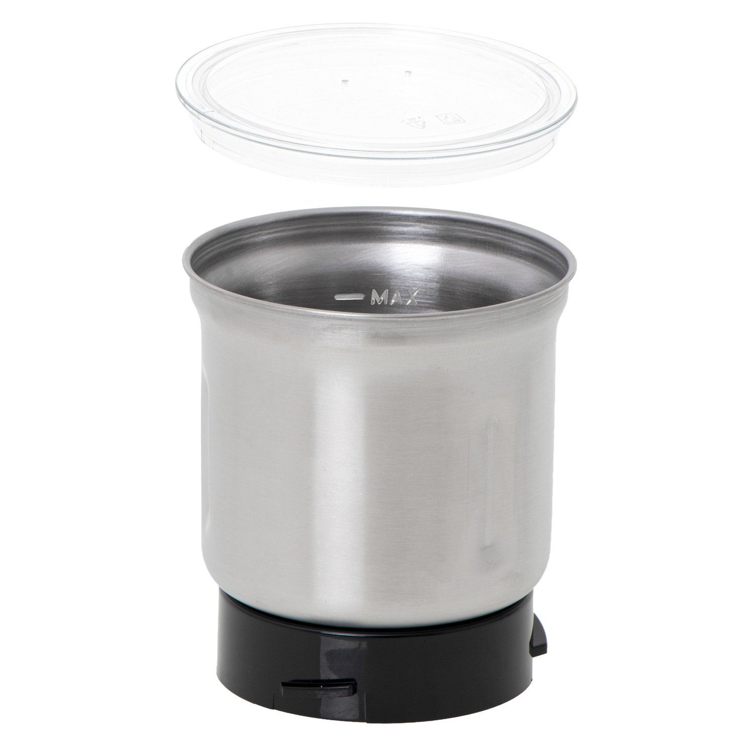 Extra Tasse für Kaffeemühle CR4444. Der Becher hat ein Fassungsvermögen von ca. 75 g Kaffee, sodass Sie die perfekte Menge Kaffee für mehrere Personen mahlen können. Der Becher hat eine speziell profilierte Klinge zum Mahlen, sodass er problemlos mit Nüssen, Eis und hartem Gemüse umgehen kann.