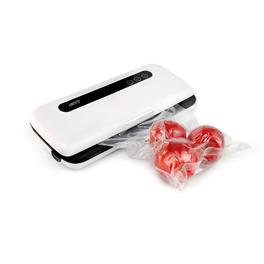 Mit dem Vakuumiergerät CR 4470 können Sie Ihre Produkte hermetisch versiegeln, was besonders bei der Lagerung von Lebensmitteln nützlich ist. Hermetisch versiegelte Produkte werden vor dem Verlust ihres Geschmacks und Aromas geschützt und bleiben viel länger frisch (bis zu 5 Mal länger als herkömmlich gelagerte Produkte). Dank seiner kompakten Размер ist das Versiegelungsgerät die perfekte Wahl für Haushalte, Geschäfte oder Lebensmittelverkaufsstände. Die Vakuumierleistung beträgt 12 l pro Minute. Die maximale Breite des Beutels beträgt 30 cm, aber wir empfehlen, Beutel zu verwenden, die nicht breiter als 28 cm sind.