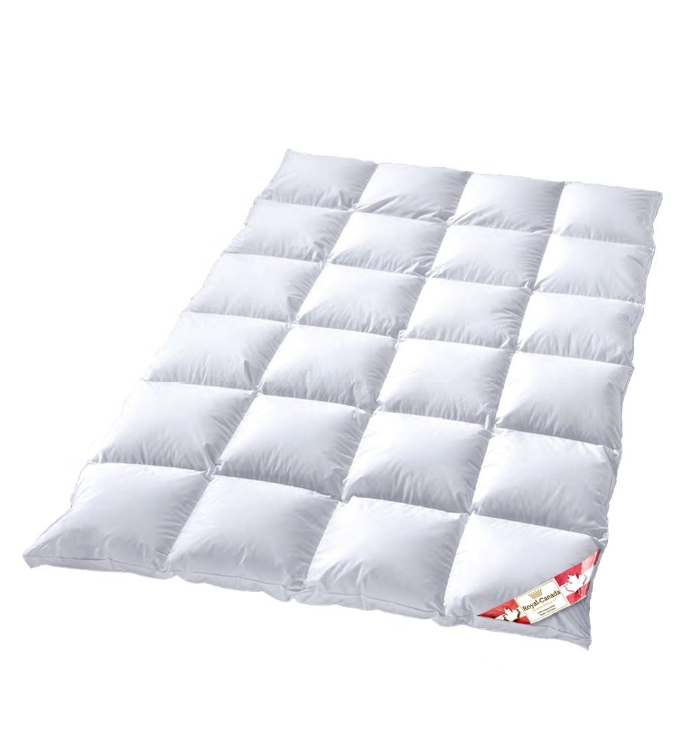 ...... die Gänsedaunendecke zum sensationell günstigen Preis, direkt vom Bettenfachgeschäft! Wärmebereich 3: optimale Ganzjahresdecke mit warmer Wärmehaltung, Füllung: neue silberweiße canadische Gänsedaunen und Federchen Klasse 1 Der Außensteg ist eine sichtbare Erhöhung am Rand und dadurch bekommt die Decke eine schöne Optik in der Bettwäsche und sorgt für mehr Volumen. Die Royal Canada Goose Daunendecke Kassettendecke ist in 5 Größen erhältlich und auch im Wärmegrad 4 (Winterdecke): Размер / Kassetten / Füllgewicht 135x200 cm 4x6 Kassetten 850g 155x220 cm 4x6 Kassetten 1.080 g 200x200 cm 6x6 Kassetten 1.260 g 200x220 cm 6x6 Kassetten 1.380 g 240x220 cm 6x7 Kassetten 1.660 g