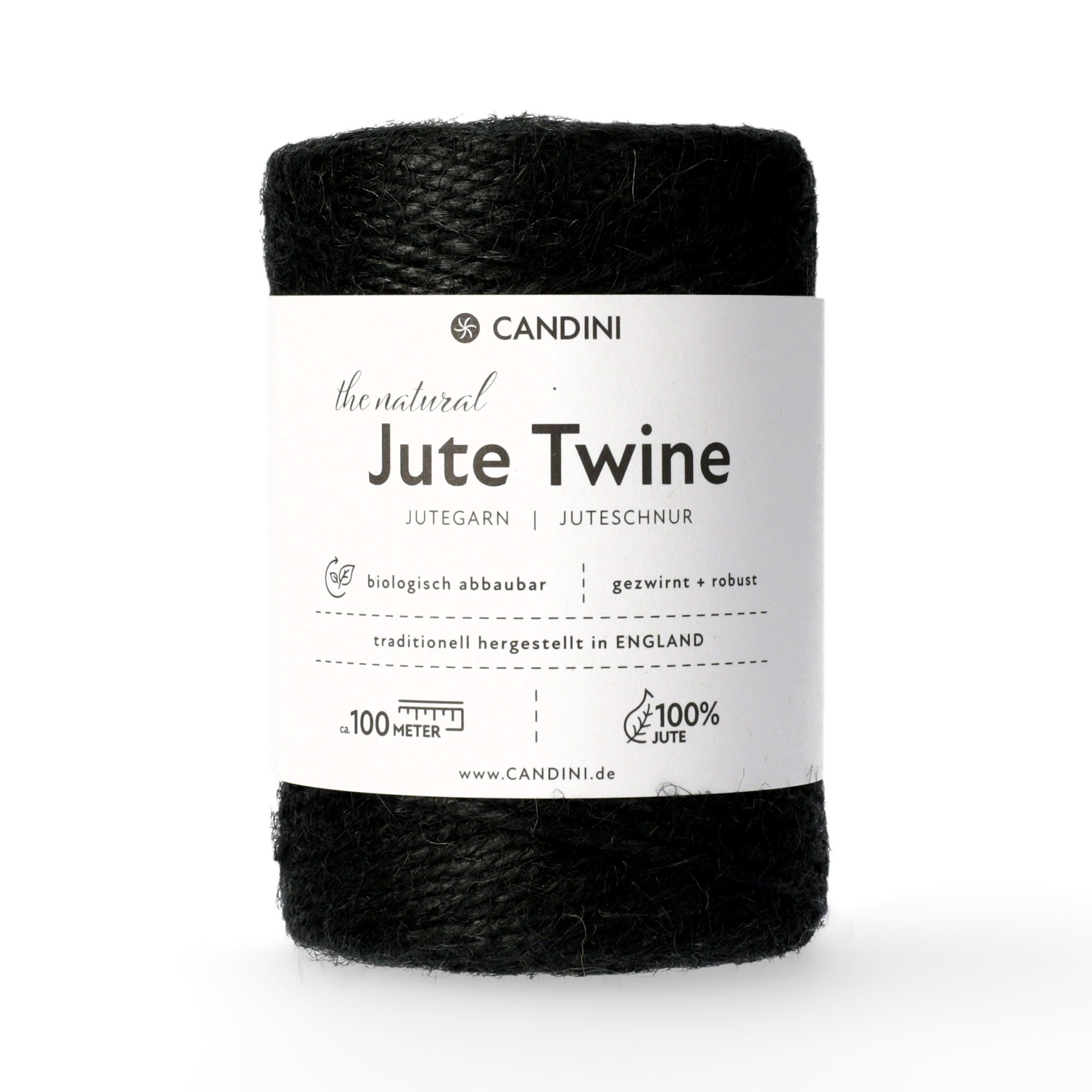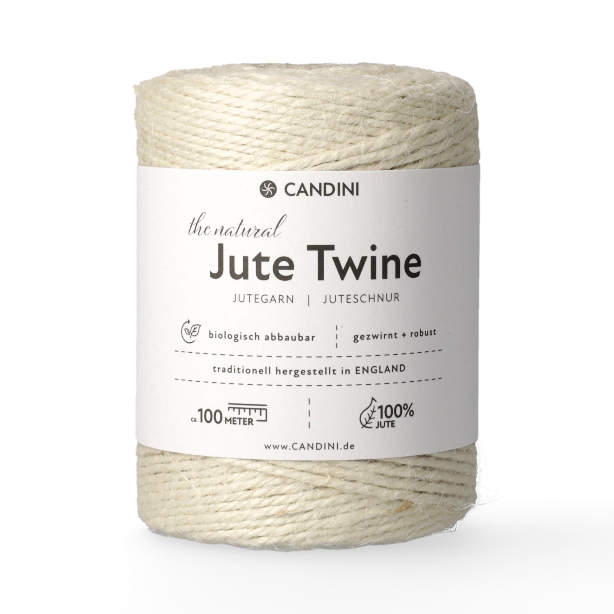 Das Candini Jutegarn besteht aus 100% natürlichen Jutefasern. Als Naturprodukt sind Jutefasern biologisch abbaubar und damit vollständig recycelbar. Das Jutegarn wird in einer traditionellen Zwirnerei in England hergestellt. Die Qualität der Juteschnur ist damit ausserordentlich hoch und kann mit Produkten aus Fernost nicht verglichen werden.