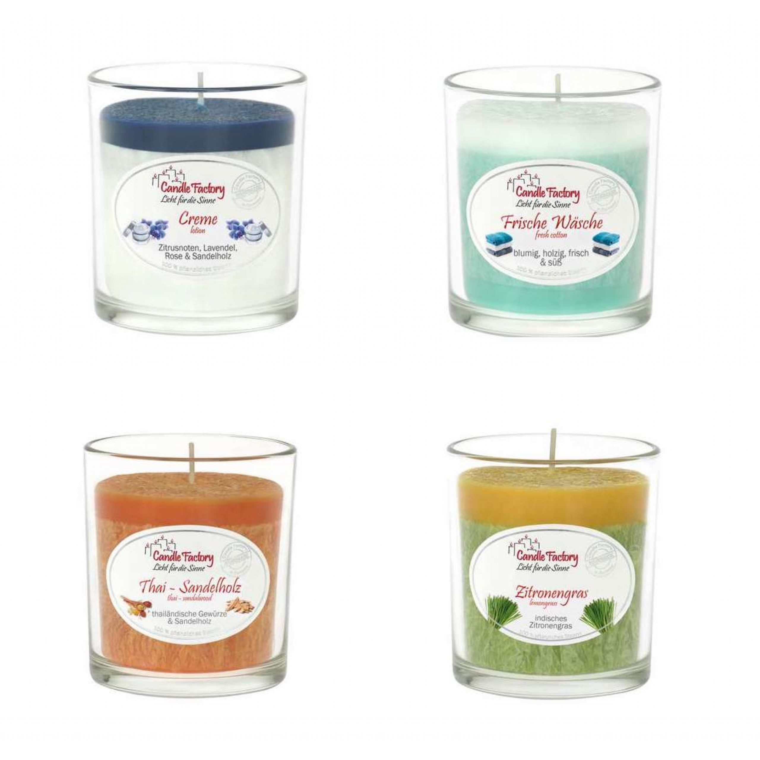 1 x Candle Factory Party Light Kerzen Frühlings-Set 1 (4 Stück) bestehend aus: 1 x Party Light Kerze Creme, 1 x Party Light Kerze Kerze Frische Wäsche, 1 x Party Light Kerze Thai-Sandelholz, 1 x Party Light Kerze Zitronengras-