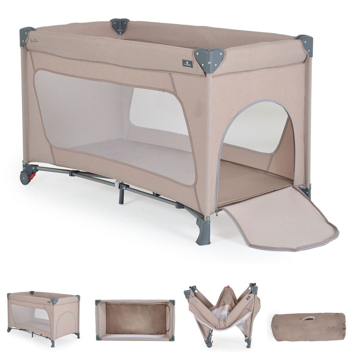 Das Reiselaufstall One Touch von Cangaroo begeistert Groß und Klein. Kompakt zusammengefaltet und in einer praktischen Tragetasche verstaut, begleitet das schnell abgebaute Design, Familien zu Hause oder im Urlaub. Durch einen seitlichen Reißverschluss kann das Kind leicht erreicht werden, oder sogar selbst rein und rauskrabbeln, wenn Sie diesen öffnen. Dank der zwei Räder lässt es sich einfach bewegen. Bei Nichtgebrauch wird das Bett zusammengeklappt und in der mitgelieferten Tragetasche verstaut.