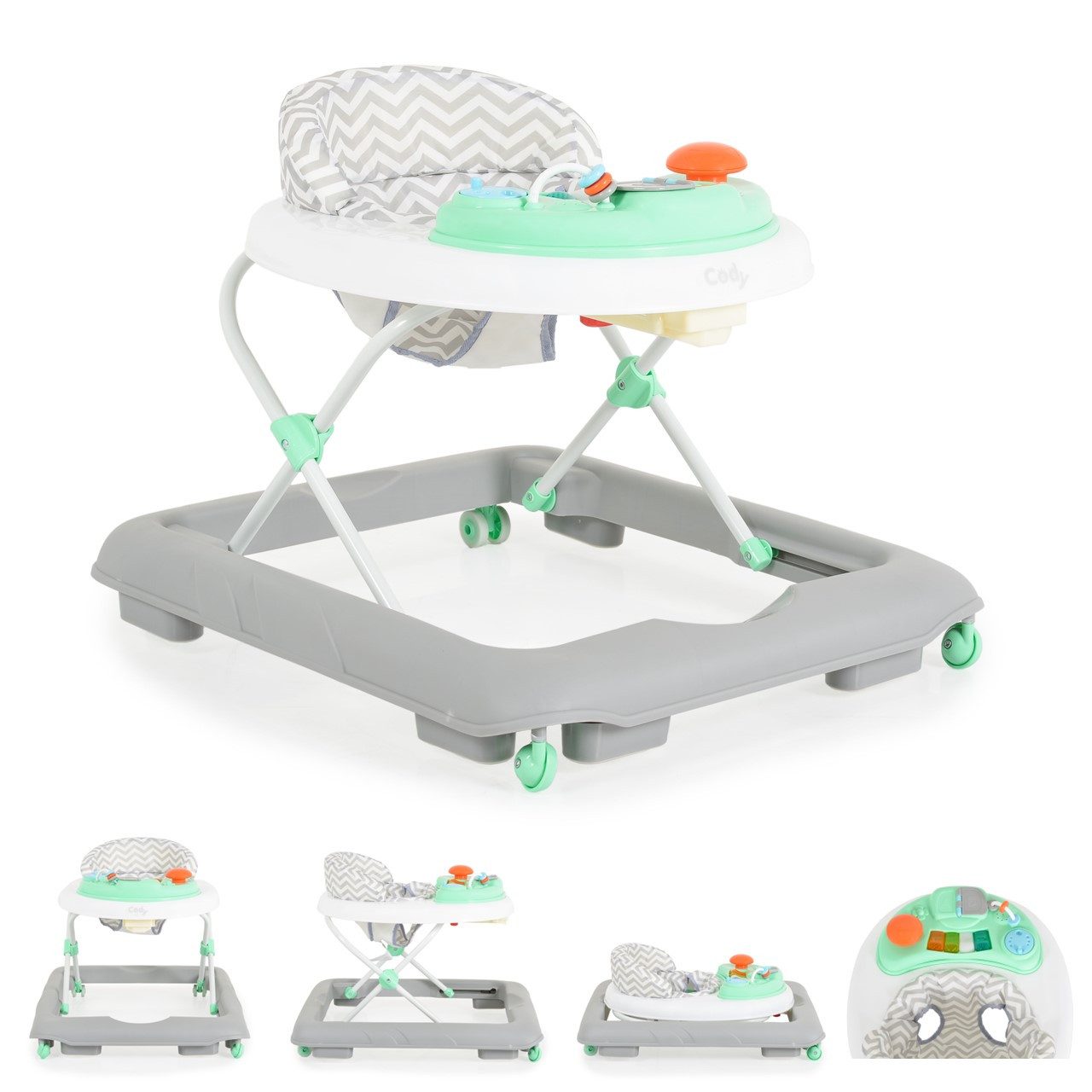 Die Lauflernhilfe Cody von Cangaroo unterstützt Ihr Baby bei seinen ersten Gehversuchen. Die Lauflernhilfe ist dreifach in der Höhe verstellbar, sodass sie sich der Размер Ihres Kindes anpasst. Das Spielcenter mit Musikfunktion wird alle Aufmerksamkeit auf sich ziehen und für musikalische Unterhaltung sorgen. Die Vorderräder sind um 360° drehbar und bieten Ihrem Kind die optimale Wendigkeit.