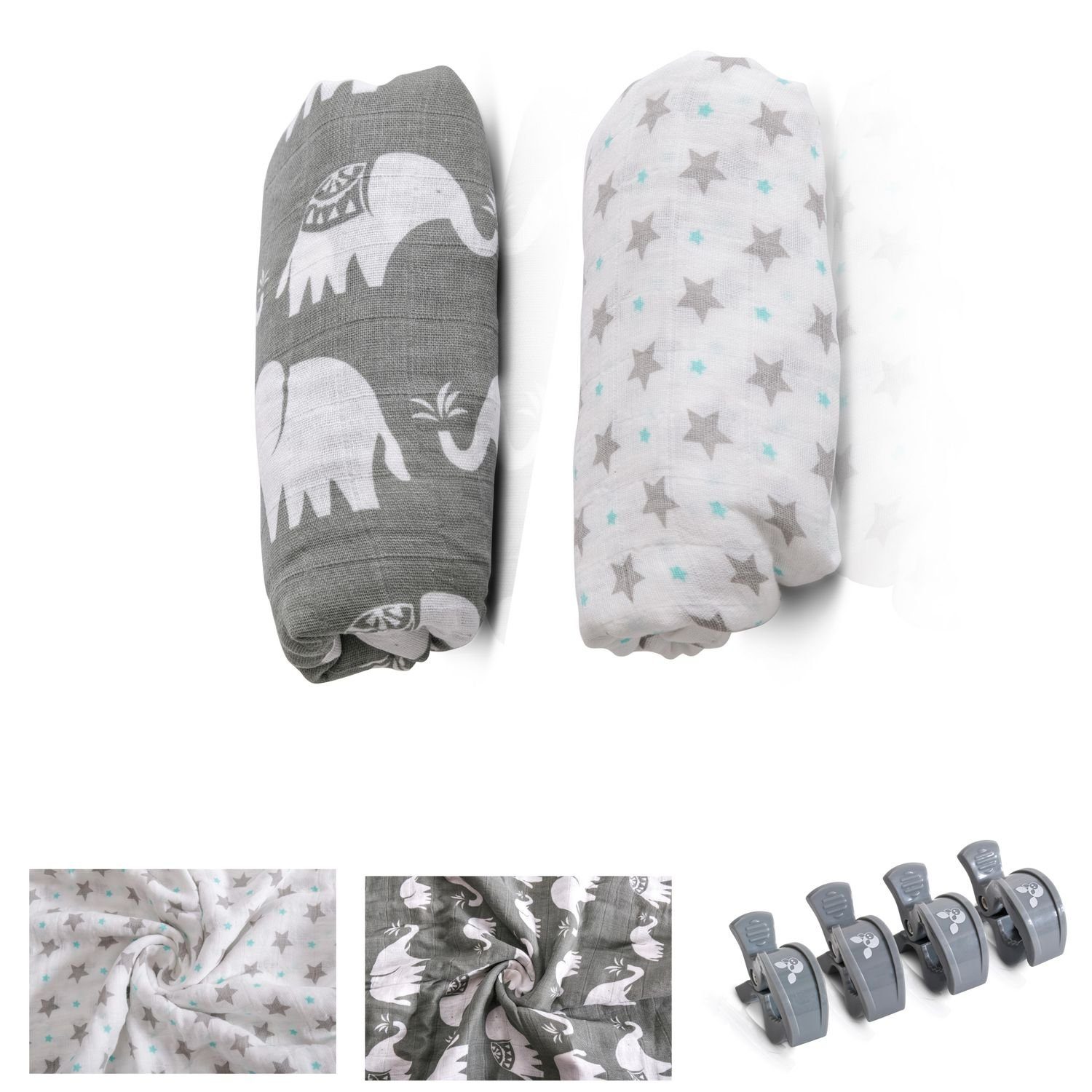 Das Baby Stoffwindel Set Aimy ist gefertigt aus reiner Baumwolle und für zarte Babyhaut geeignet. Die leichten und dünnen Musselin-Tücher sind ein Muss im Babyalltag. So können sie als Windeln, Schmusetücher, Spucktücher und vieles mehr eingesetzt werden. Die vier Kinderwagenklemmen bieten die Möglichkeit, zur einfachen und schnellen Befestigung am Kinderwagen. So kann Ihr Kind in Ruhe spielen oder schlafen.