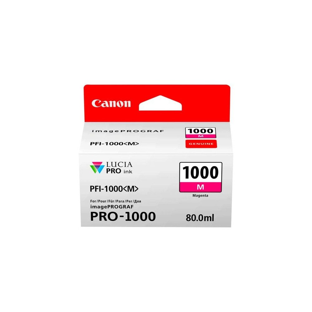 Eigenschaften | Magenta Druckertinte für Canon PFI-1000 M Original Canon Produkt, Artikelnummer 209799 Kompatibel mit Canon Druckerserien Hochqualitative Farbdrucke |