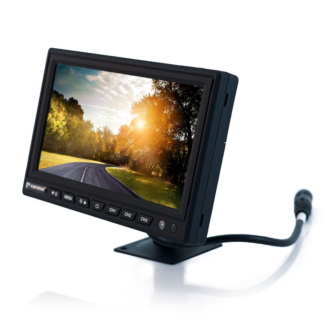 7" (17,8 cm) Monitor für bis zu drei Rückfahrkameras. Hervorragende Bildqualität durch Display mit hoher Auflösung. Geeignet für herkömmliche CVBS-Kameras und hochauflösende AHD-Kameras.