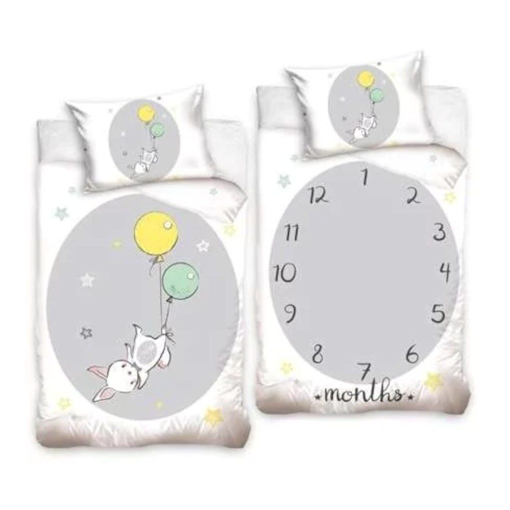 Sanft, atmungsaktiv und pflegeleicht – dieses 2-teilige Set von Carbotex bringt mit seinem liebevollen „Häschen mit Ballons“-Motiv eine ruhige, freundliche Atmosphäre ins Kinderzimmer.