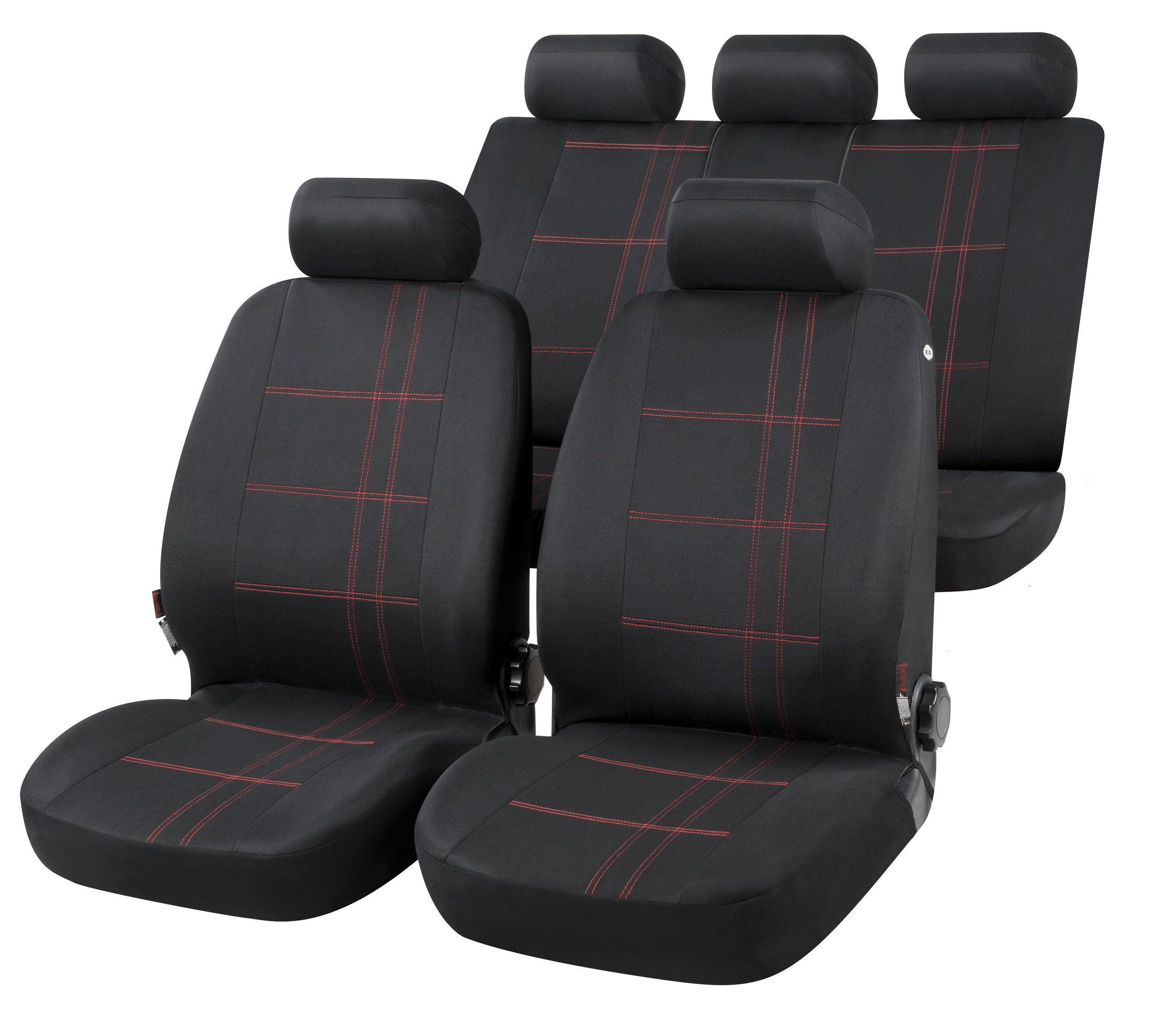 Lieferumfang | 2 Vordersitzbezüge 2tlg, 1 Rücksitzbezug 5tlg, 5 Kopfstützenbezüge |