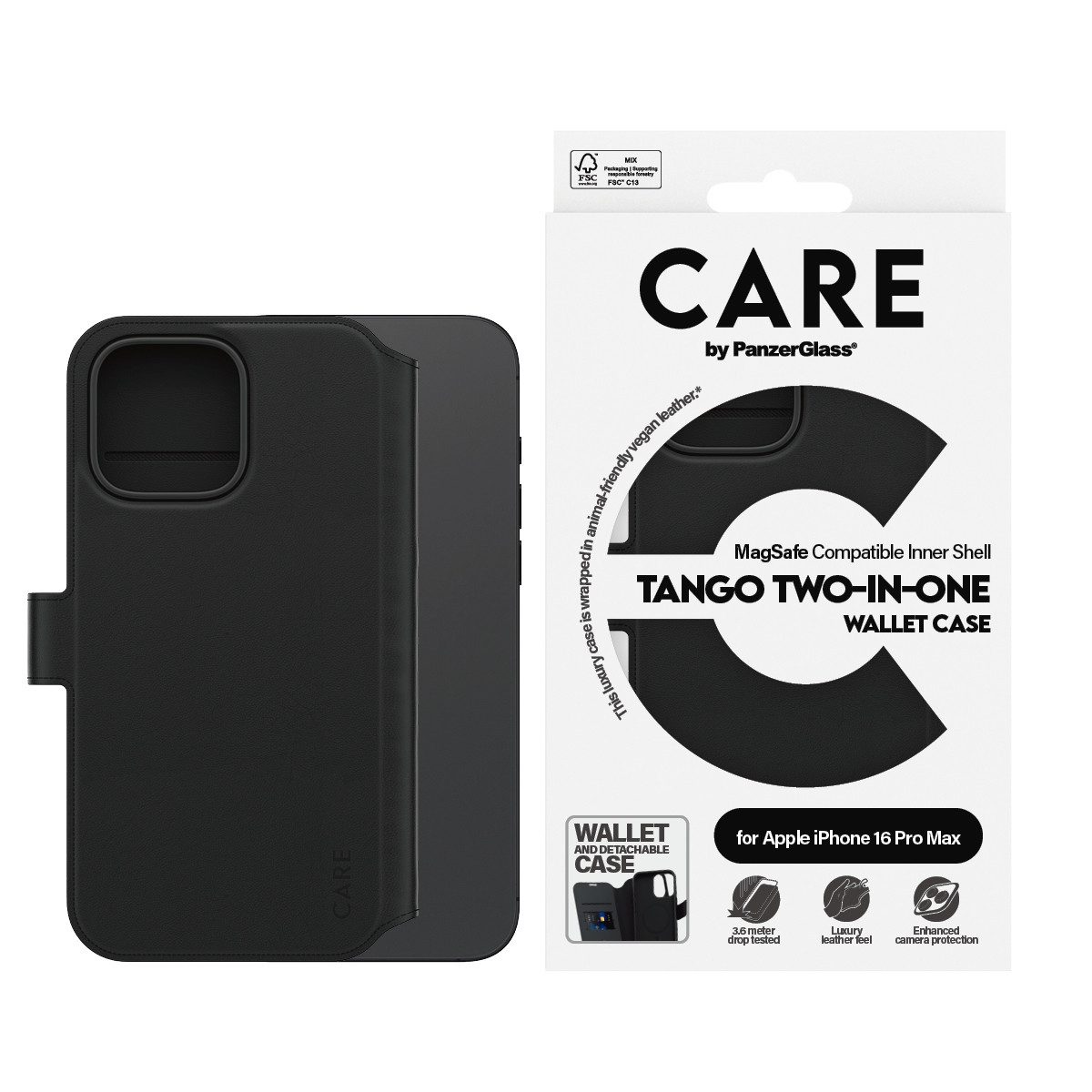 CARE by PanzerGlass Handyhülle Case Feature Tango 2-in-1 Wallet Case Apple iPhone 16 Pro Max, Backcover, Schutzhülle, Handyschutzhülle, Case, Schutzcase, stoßfest