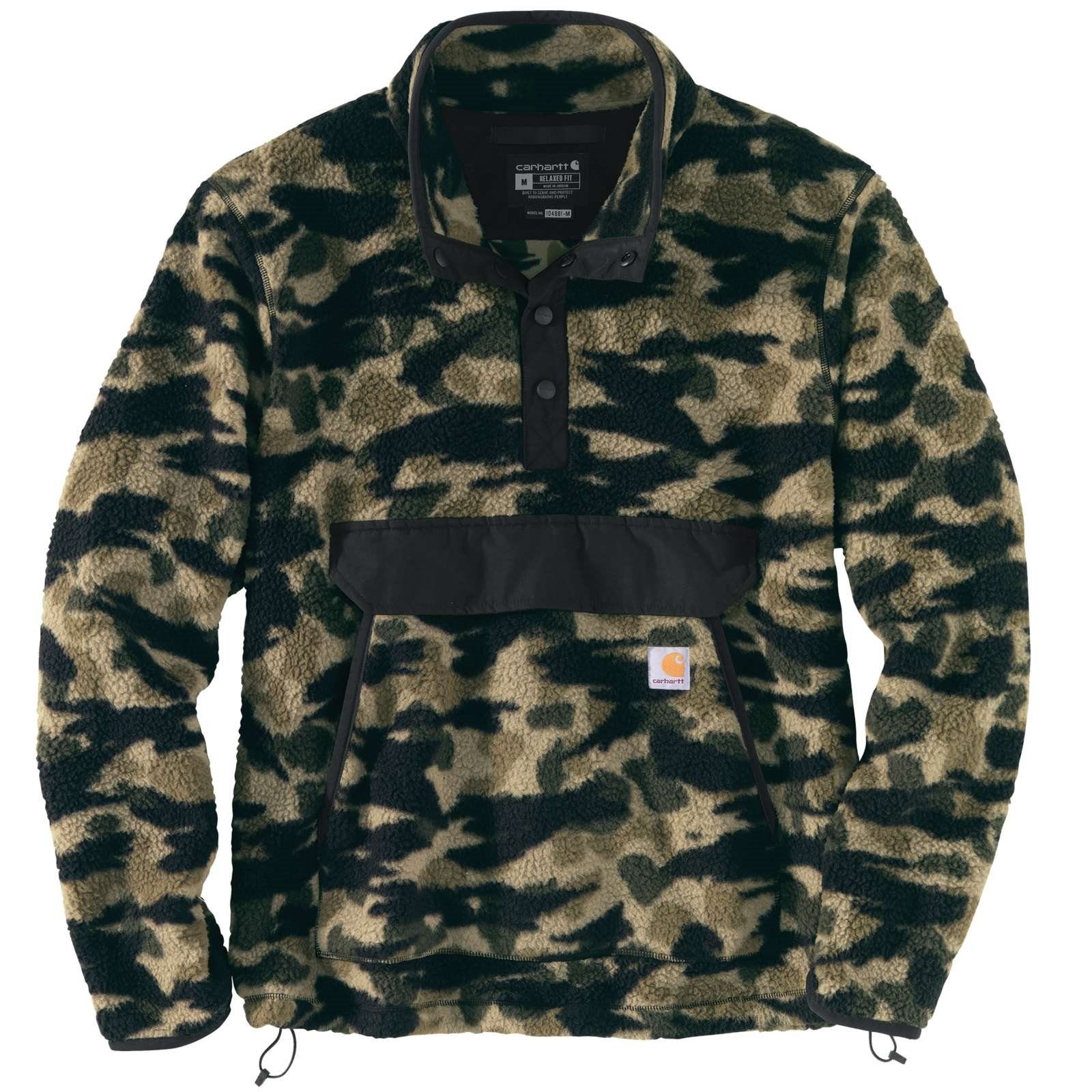Carhartts neuer Anstrich des klassischen Fleece-Pullovers. Diese warme Schicht für Männer eignet sich gut für die Arbeit oder für kurze Ausflüge am Wochenende. Der Pullover sitzt bequem und kann gut über Shirts und Hemden getragen werden. Mit dem Kordelzugstopper am Saum schützt er vor Kälte.Materialzusammensetzung | Polyester |
