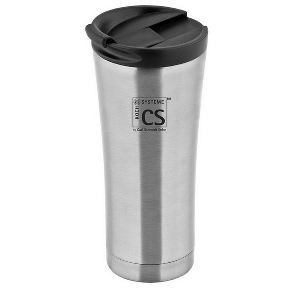 Dieser schöne Thermosbecher der Marke CS-Kochsysteme by Carl Schmidt Sohn ist aus doppelwandigem Edelstahl gefertigt.
