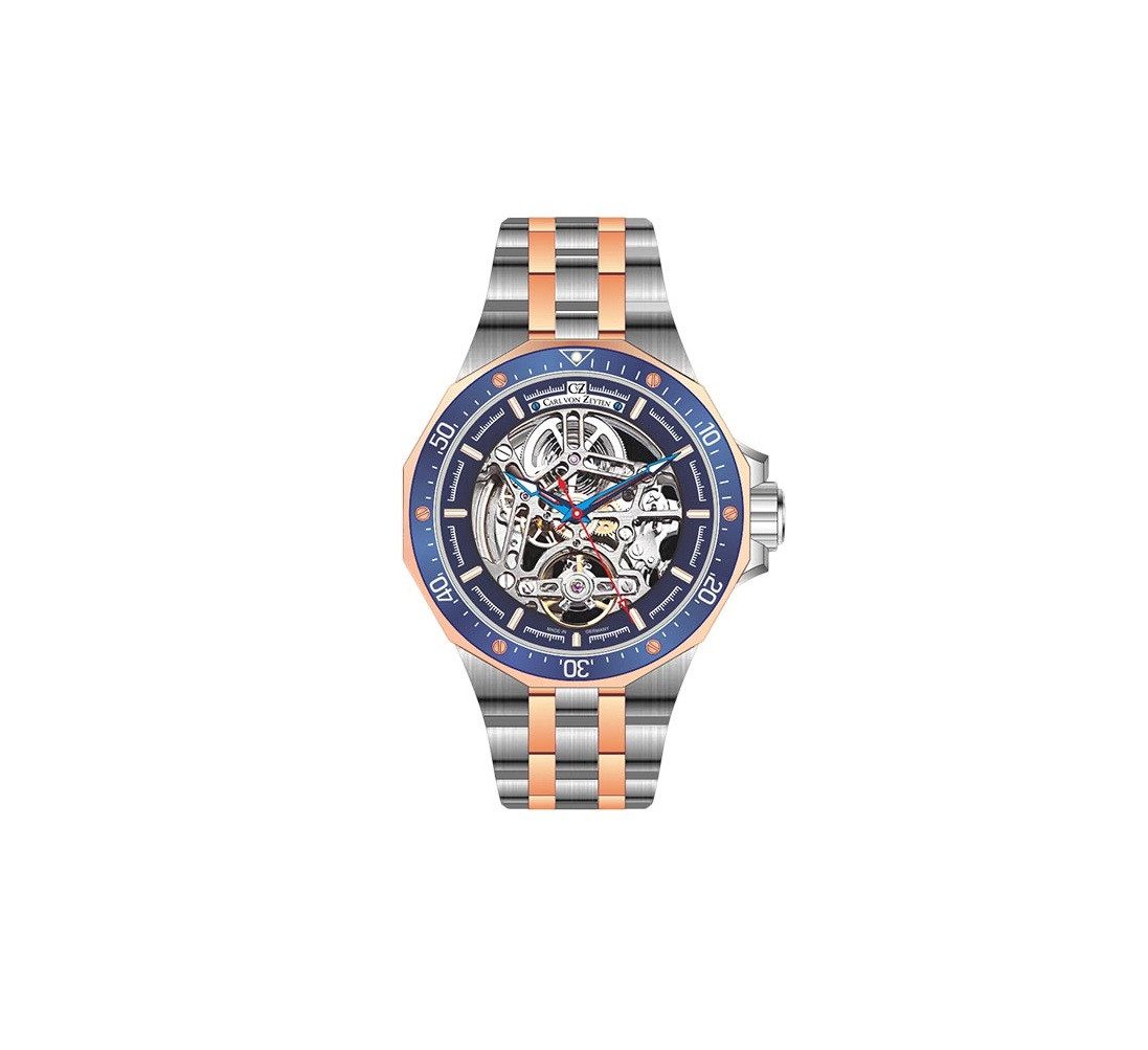 Besondere Merkmale | Edelstahlgehäuse Blau/Rosé - mit sichtbarem Skelett - Made in Germany |