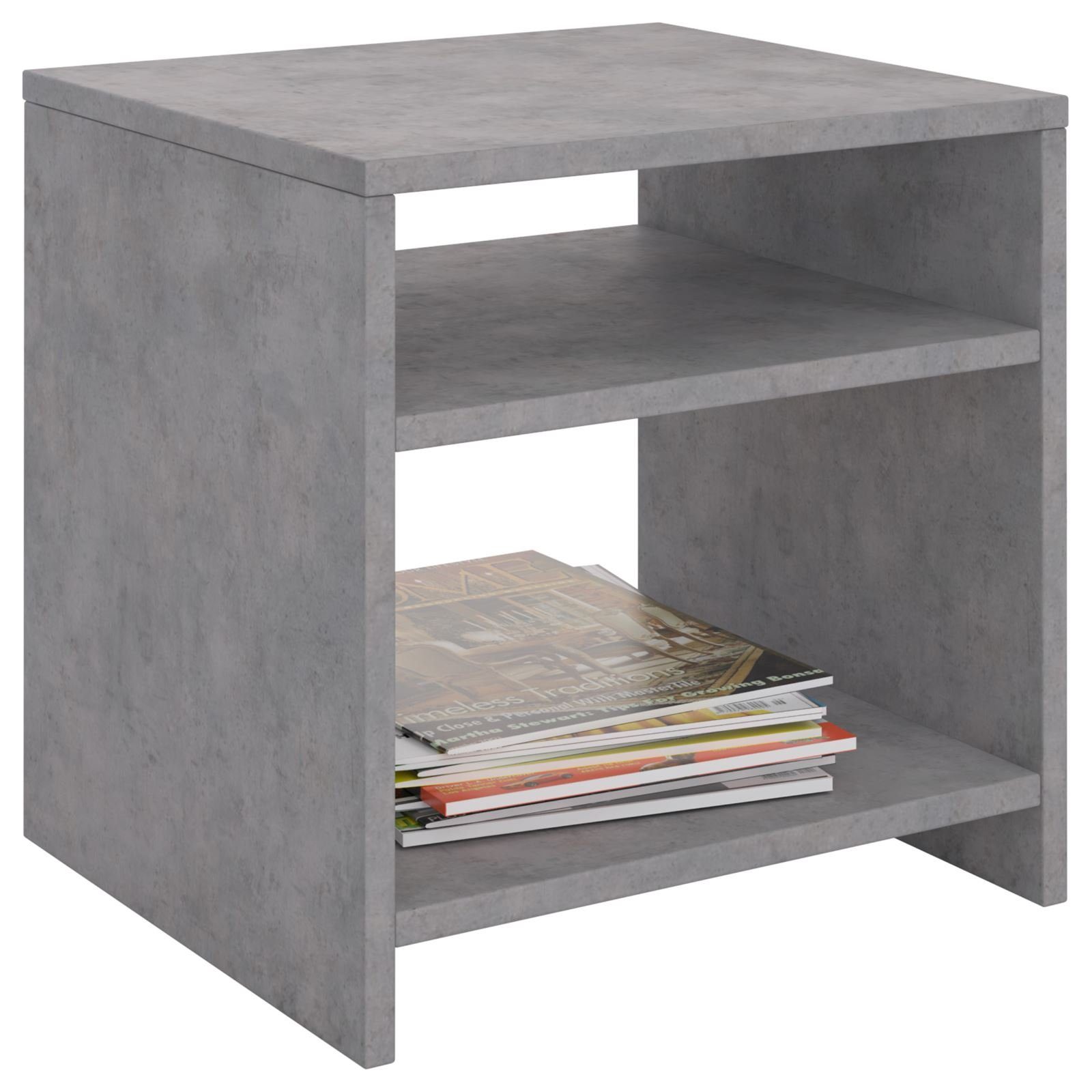 Der Almeria Beistelltisch ist ein modernes und zeitloses Möbelstück, das in jedem Raum eine gute Figur macht. Rundum foliert ist der kleine Tisch frei im Raum stellbar und bietet vielseitige Einsatzmöglichkeiten, zum Beipsiel als Ablagetisch oder Nachttisch. Ausgestattet mit 2 Ablageflächen bietet er ausreichend Platz für Ihre Utensilien. Dank der kratzfesten und pflegeleichten Oberfläche in Betonoptik ist er besonders langlebig und einfach zu reinigen.