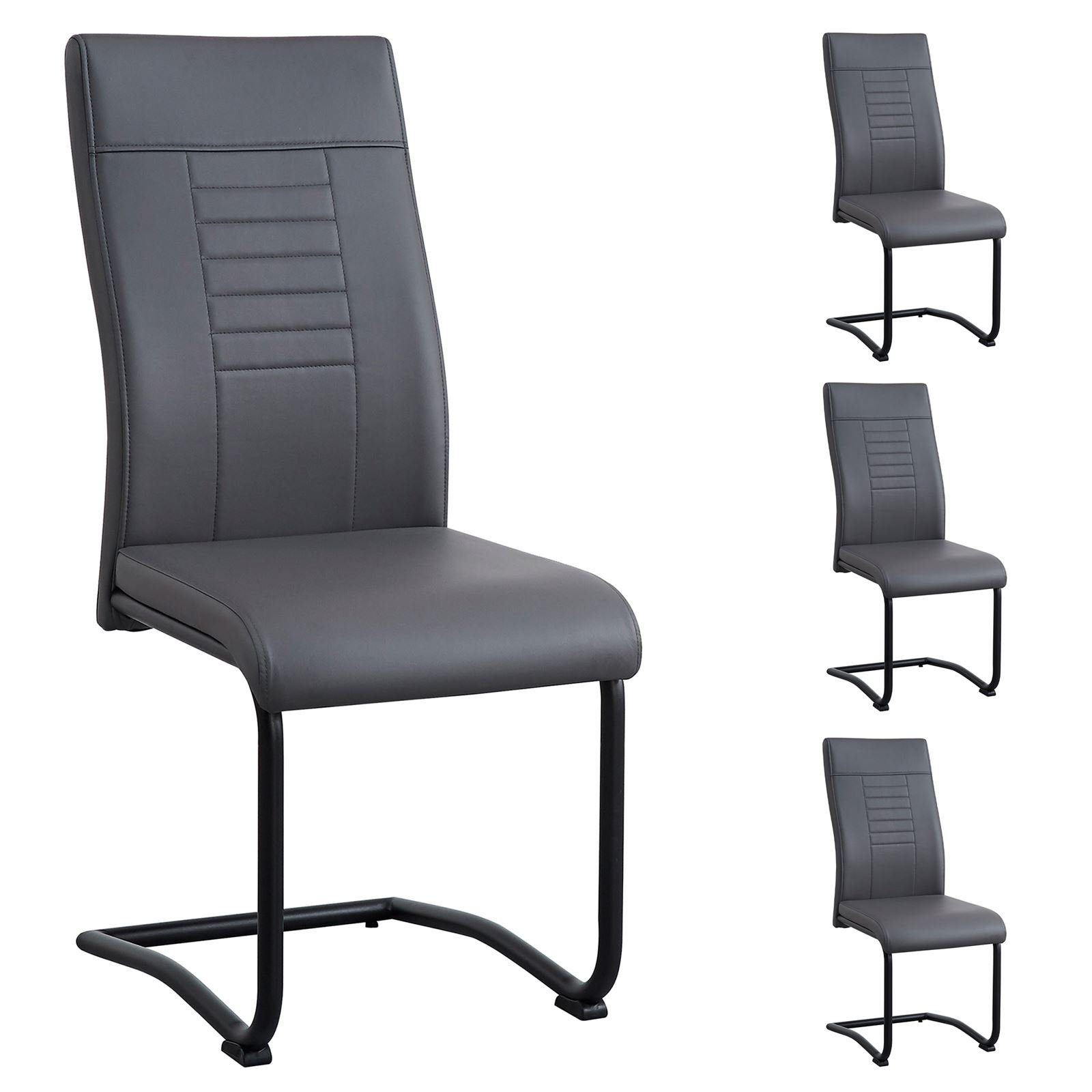 Unser Esszimmerstuhl Loano sorgt für höchsten Sitzkomfort und lässt Ihren Essbereich in neuer Eleganz erstrahlen. Das Gestell aus pulverbeschichtetem Metall in mattschwarz sieht nicht nur modern und elegant aus, sondern überzeugt mit seiner Stabilität und höchstem Sitzkomfort. Durch die Schwingbewegungen wird Ihr Rücken und Körper beim Sitzen entlastet und lädt Sie zum längeren Verweilen am Esstisch ein. Einem ausgiebigem und langem unterhaltsamen Gespräch mit Familie und Freunden steht nichts mehr im Weg. Die in Lederoptik bezogene Sitzfläche ist elegant, und dank ihrer Polsterung weich und bequem.