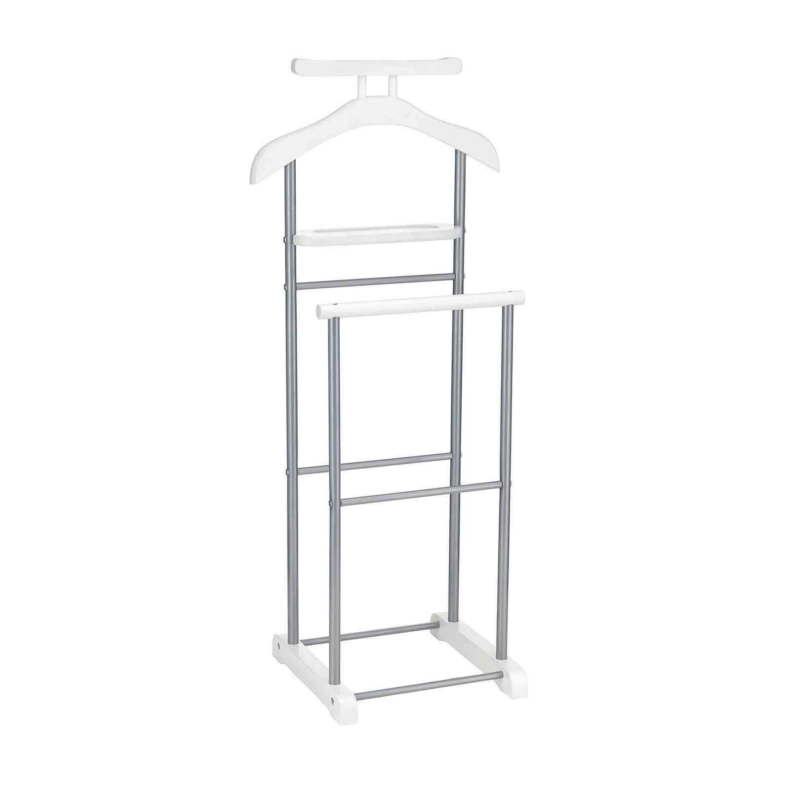 ist die Lösung für knitterfreie Hemden, Blusen und Hosen. Die stabile Materialkombi aus Metallgestell und MDF Platten machen den Stummer Diener zum Blickfang im Schlafzimmer. Der integrierte Kleider und Hosenbügel bietet Platz für Ihre Tagesgarderobe, die zusätzliche kleine Ablage eignet sich zum Aufbewahrung von Schmuck und Uhren.