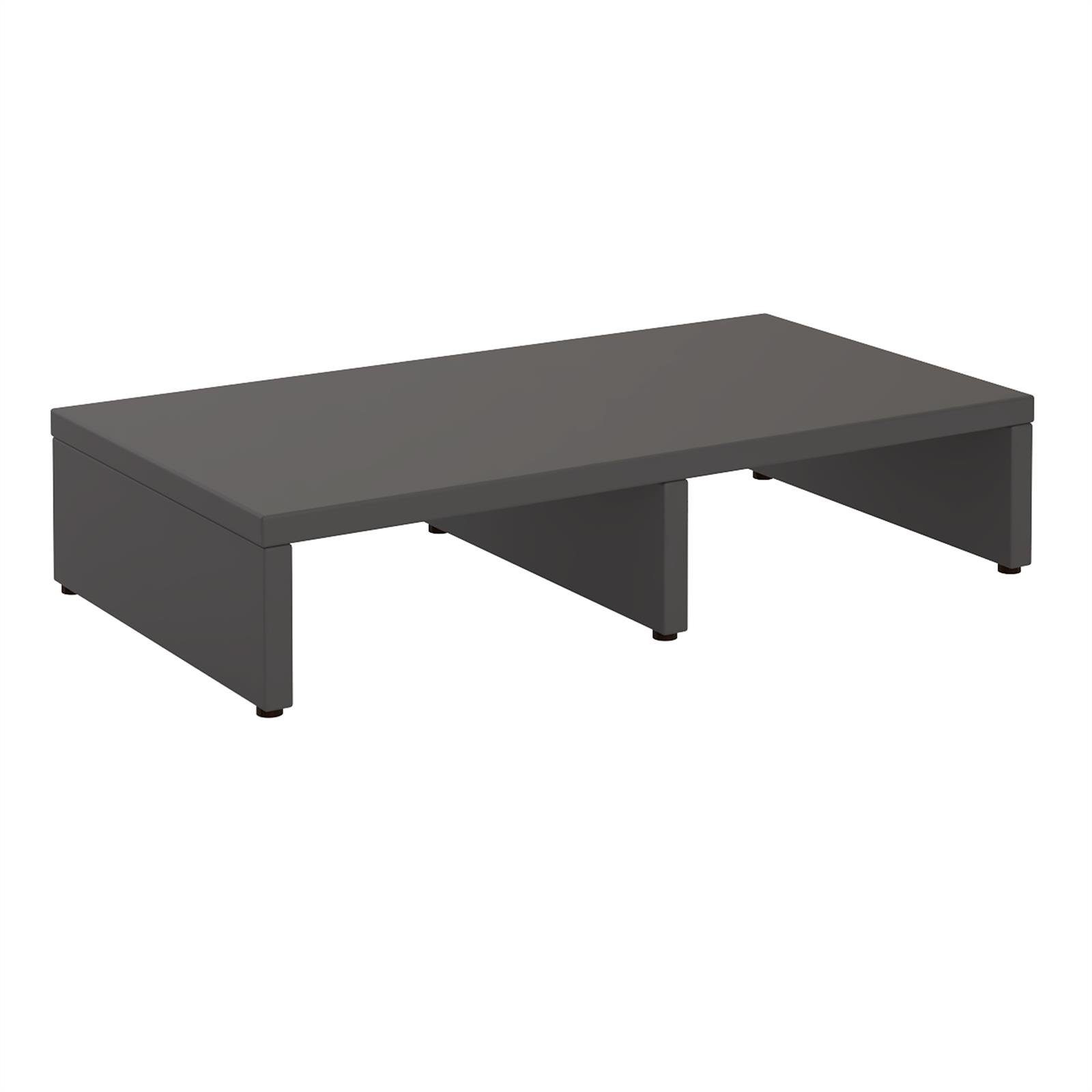 ... ist für Pc Monitore und auch Drucker geeignet. Ebenfalls befindet sich unter dem Schreibtischaufsatz noch ein kleiner Stauraum für Tastatur, Schnellhefter, Akten, Collegeblöcke und mehr. Für schwere Monitore, zum Beispiel RöhrenMonitore, haben wir extra noch eine Zwischenstrebe hinzugefügt, die optional angebracht werden kann. Schon eine kleine Erhöhung des Monitors kann einen großen Unterschied in Komfort und Zweckmäßigkeit ausmachen, und eine ergonomische Sitzhaltung ermöglichen.
