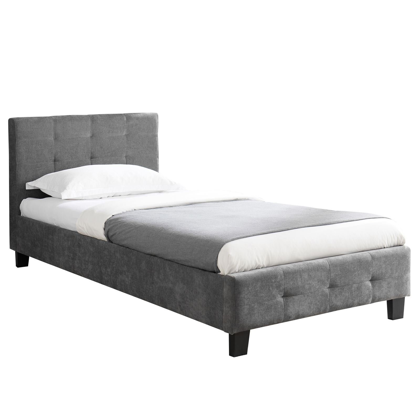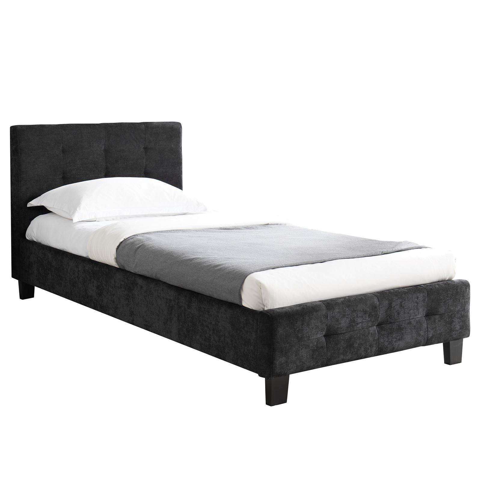 Unser Polsterbett Giaveno verbindet komfortabelen Schlaf mit stilvollem Design. Der hochwertige Stoffbezug bietet mit seiner Knopfheftung am Kopfteil eine angenehme Haptik, während das robuste Bettgestell aus Kiefernholz Langlebigkeit verspricht. Kunststoffbeine in schwarz komplettieren den zeitlosen Look. Ein Bett, welches Ihren Schlafbereich mit Charme und Eleganz bereichert, ideal für Jugend- oder Gästezimmer.