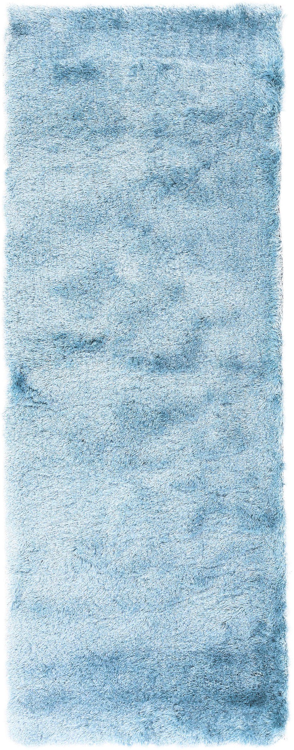 Ich habe den Teppich in blau bestellt 4 Meter lang, er ist richtig Königsblau mit etwas Glitzer, er ist wahnsinnig flauschig und minimal rutschig, aber nicht dramatisch. Wenn man ein schönen königsblauen Teppich, wo man gern barfuß drüber laufen möchte, dann empfehle ich diesen.