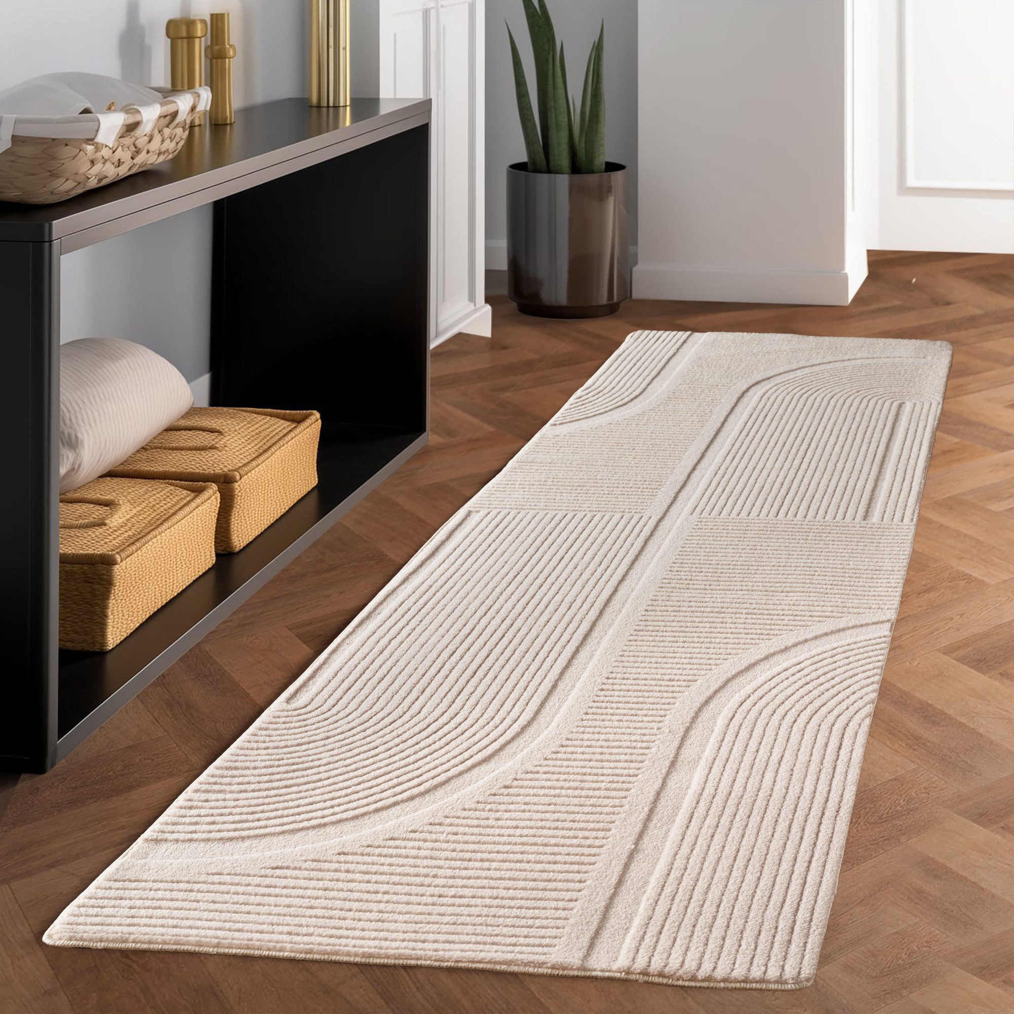 Hinweis) | Der einfarbige Designer Teppich im skandinavischen Boho Stil ist weich, pflegeleicht und hat einen modernen 3D-Effekt. Waschbar und mit rutschfester Baumwollrückseite ausgestattet, bietet er eine Florhöhe von 12 mm. Erhältlich in Creme und Beige, ist er OEKO-TEX® STANDARD 100 zertifiziert ideal für Wohnzimmer und Schlafzimmer! |