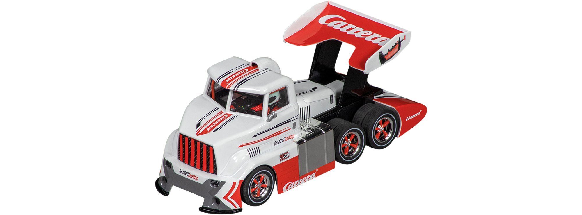 Der Carrera Racetruck Conventional „Carrera Race Taxi” zeigt zu jedem Zeitpunkt, wie viel Kraft in einem Truck stecken kann. In einem Elefantenrennen auf der heimischen Rennstrecke ist der weiß-roteFlitzer garantiert die richtige Option. Der Truck mit seinem abgerundeten Fahrerhaus und dem großen Heckspoiler verspricht in seinem Design, was er auf der Rennstrecke beweist: Der Truck ist ein einmaliges, mächtiges Gefährt.