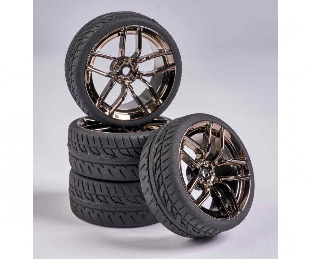 Carson 1:10 Räderset 10 Sp.Design Reifen + Felge Rauch/chrom