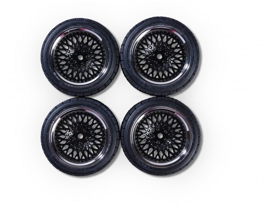 Carson Reifen mit Felgenn 1:10 Räderset Rally Design3 (4) chrom/schwarz