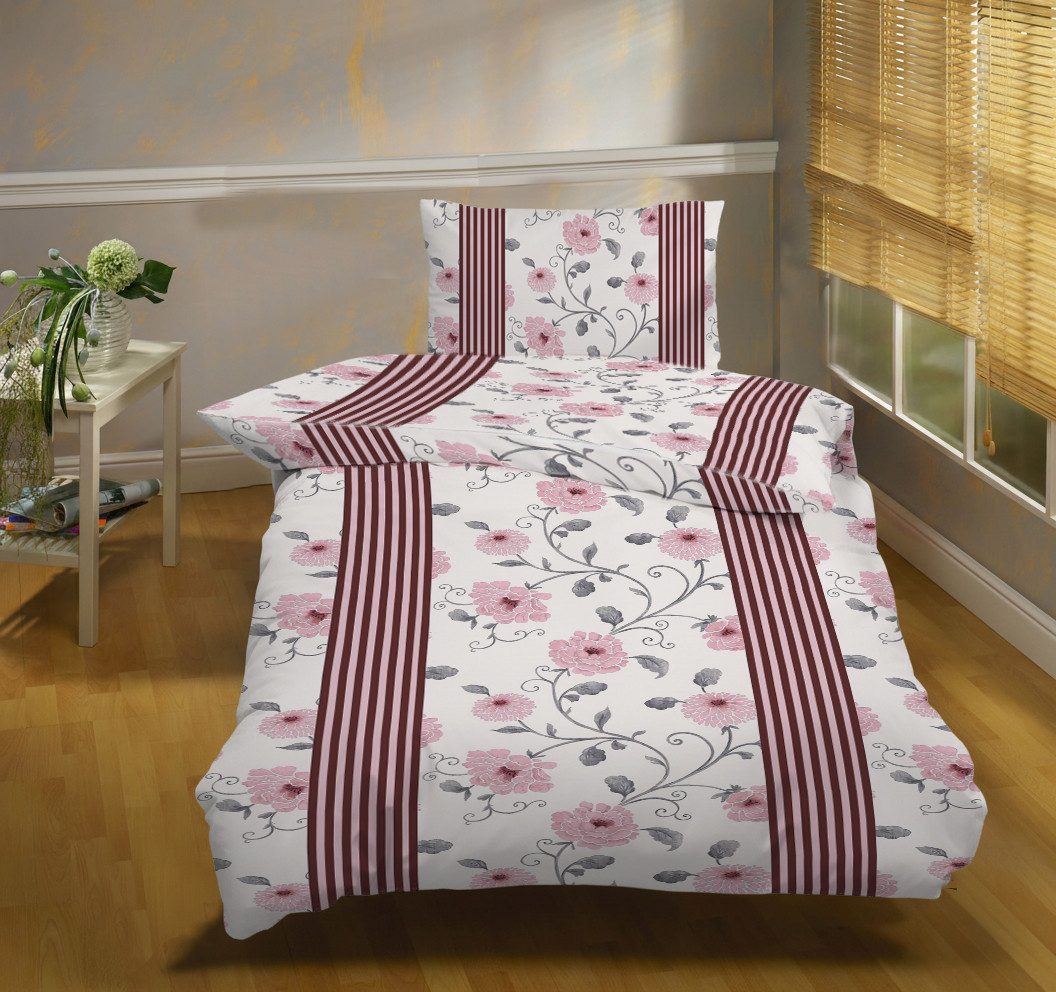 Das ansprechende Design kombiniert klassische rote Blumenmuster mit einem modernen Streifen-Look auf einem strahlenden Weiß. So setzen Sie stilvolle Akzente in jedem Schlafzimmer und können die Bettwäsche dank des Wendemotivs flexibel an Ihre Stimmung anpassen.