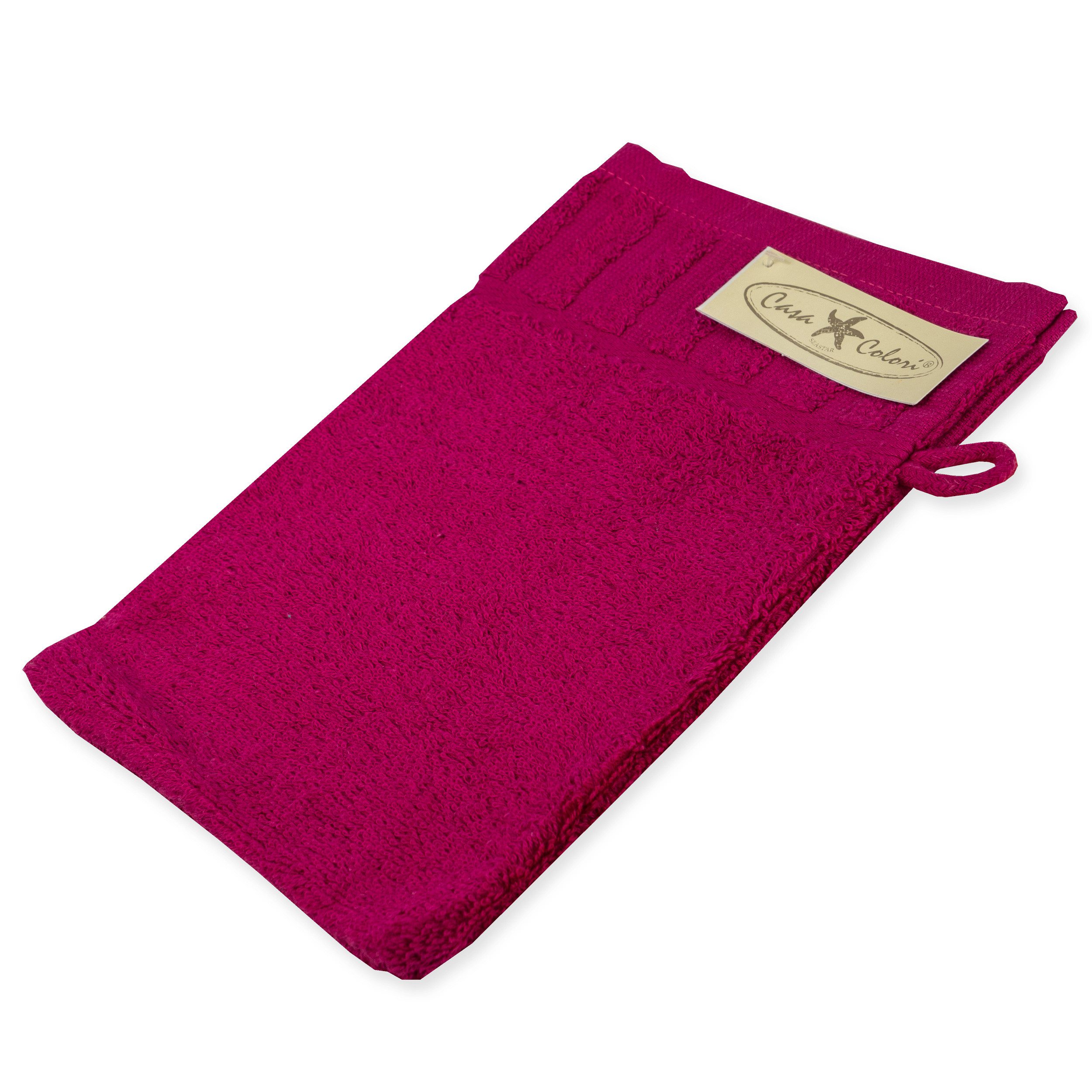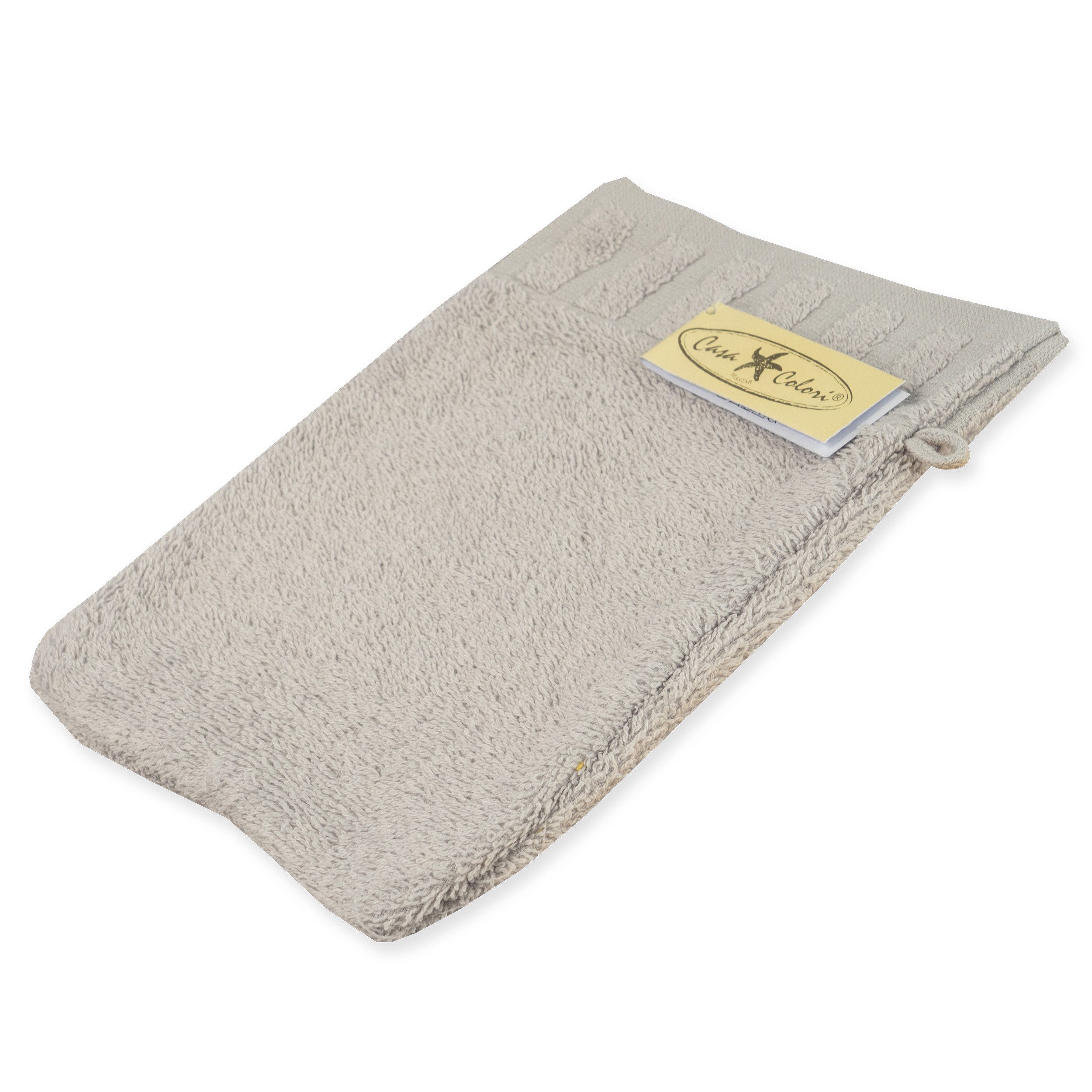 Der Casa Colori Frottier Waschhandschuh in der Размер 18x24 cm besteht aus 100% Baumwolle. Mit einem Gewicht von 500gr/m² bietet er eine hohe Saugfähigkeit und ist angenehm weich. Der Waschhandschuh ist bei 60°C waschbar, wodurch er einfach zu pflegen und hygienisch bleibt. Ideal für die tägliche Körperpflege.