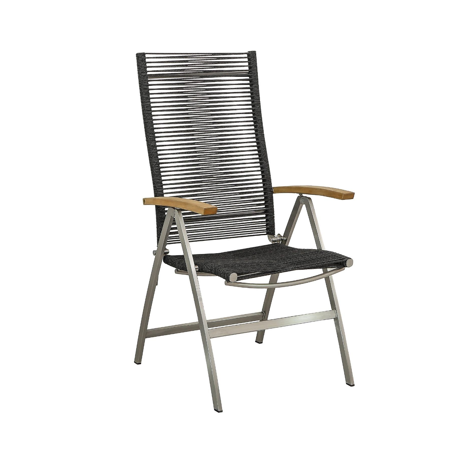 vereint ein robustes Edelstahl-Gestell mit einer attraktiven Bespannung aus Rope. Die Rope-Bespannung aus Polypropylen mit einem PE-Kern ist UV-beständig, wasserabweisend und formstabil. Die offene Bespannung wirkt luftig-leicht und schenkt auch an heißen Tagen angenehmen Komfort.