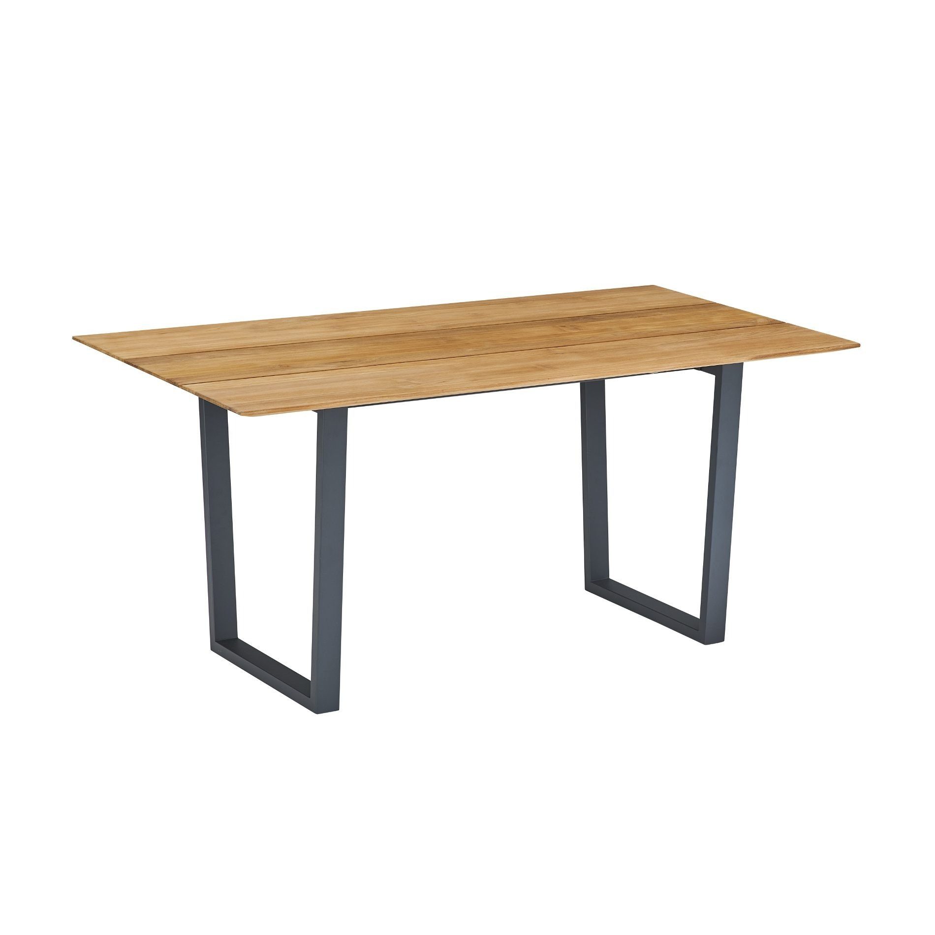… besteht aus einem modernen Materialmix. Das Kufengestell aus Edelstahl hat eine pulverbeschichtete Oberfläche. Die seidenmatte DuPont® Pulverbeschichtung in Anthrazit schenkt dem Tisch seine markante Optik und bietet gleichzeitig hohen Korrosionsschutz. Edelstahl ist ideal für Gartenmöbel: stabil, langlebig, witterungsbeständig und aufgrund des höheren Gewichts auch für etwas windigere Lagen eine gute Option im Vergleich zu Aluminium.