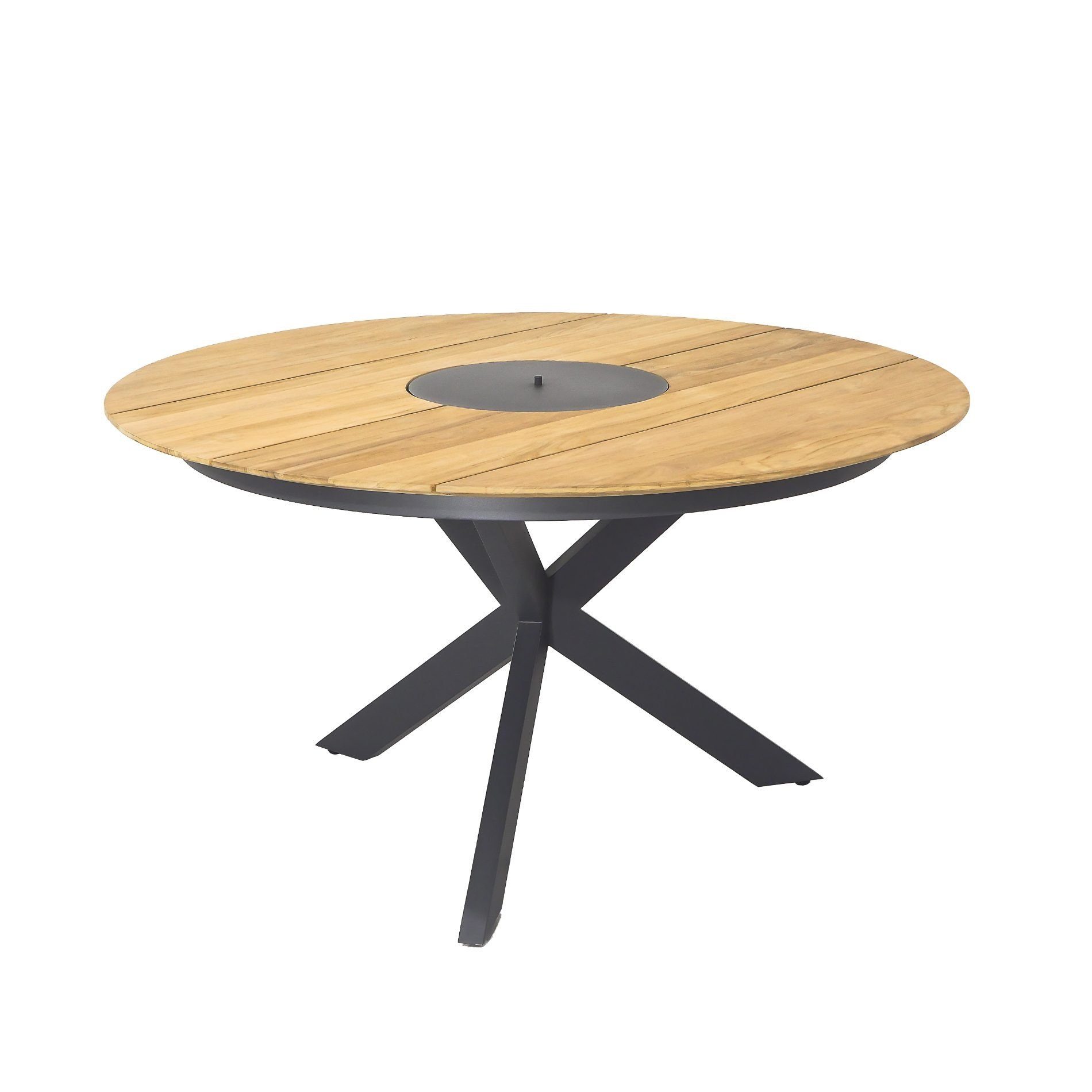 Edler Teak-Gartentisch mit Mehrwert. “Rosano” von CASA DOMA ist ein runder Gartentisch mit gekreuztem Dreibein-Gestell aus Edelstahl. Die exklusive Tischplatte aus vier Planken hat eine Aussparung für einen Flaschenkühler, so sind erfrischende Drinks immer griffbereit. Möchten Sie die Flaschenkühler-Funktion nicht nutzen, legen Sie einfach die runde Abdeckung auf. So oder so, “Rosano” ist ein Tisch für gesellige Stunden!