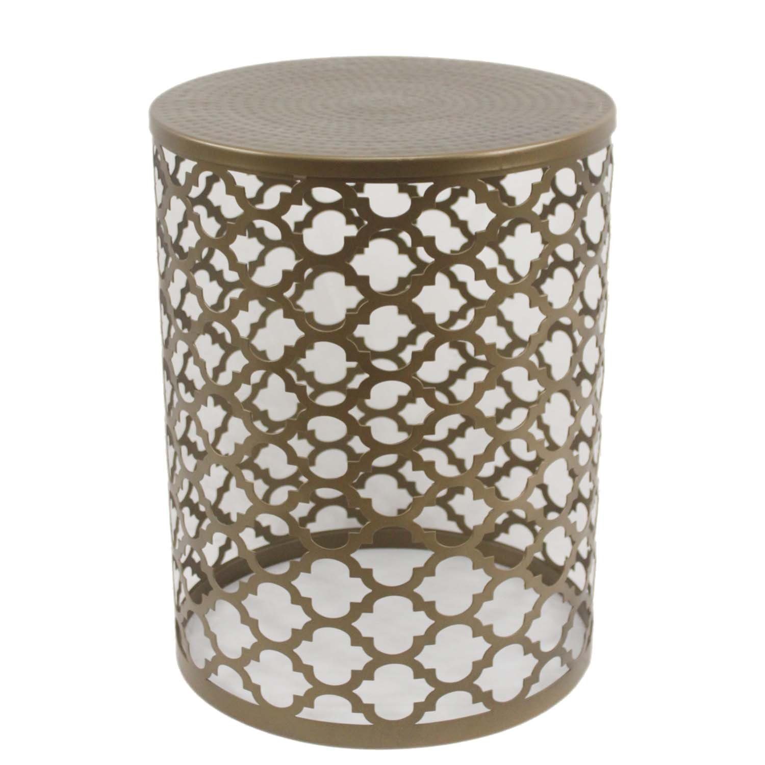 Der runde Beistelltisch hat ein Gestell aus unwiderstehlichen Arabesken Formen und die Tischplatte wurde mit Hammerschlag verziert. Das Metall Möbelstück ist ein garantiertes Highlight und wird der Blickfang in jedem Raum sein. Er kann auch als Kaffeetisch, Ablagetisch, Sofatisch, Couchtisch, Nachttisch, Blumentisch und als Telefonständer verwendet werden.