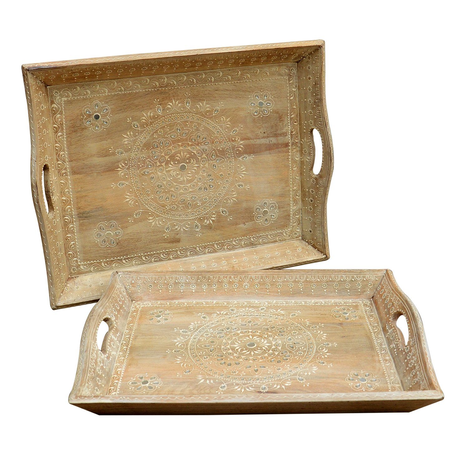 Ein wunderschönes Serviertablett in einem 2er Set mit aufwändig handgearbeiteten und handbemalten Verzierungen.