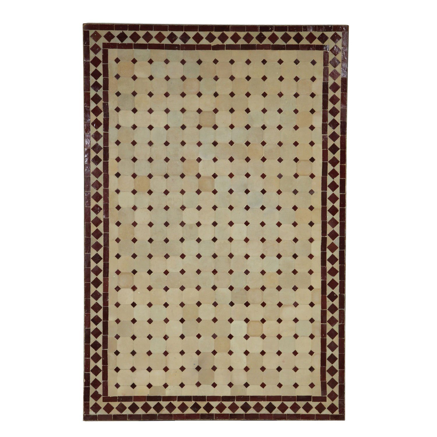 Die Mosaik-Platte besteht aus einzelnen Ornamenten aus marokkanischen Kachelmosaiken, welche innerhalb einer Eisenfassung zementiert werden. Die Optik ist hierbei unvergleichlich.