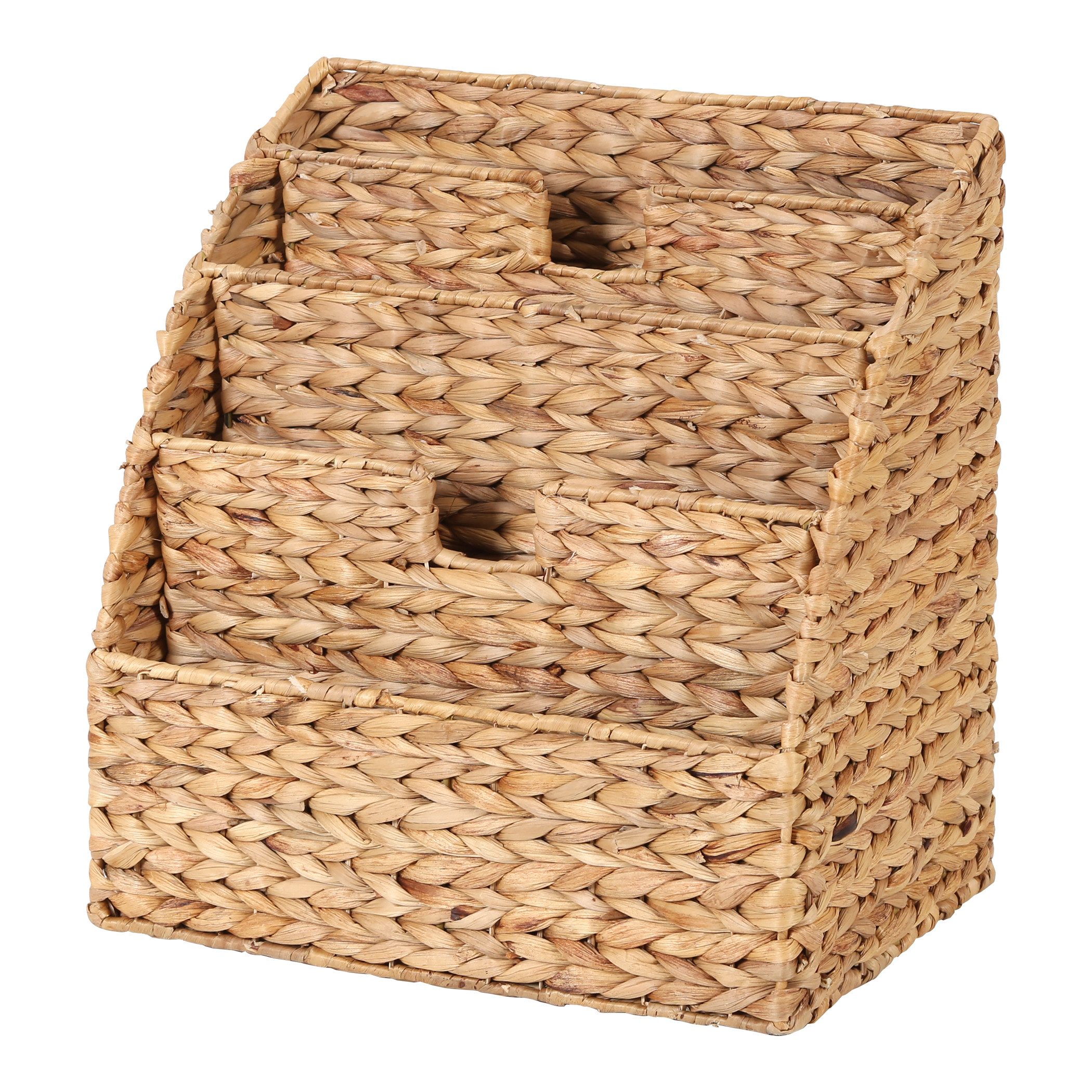 Die vier großzügigen Fächer des Zeitschriftenhalters bieten ausreichend Platz für Bücher, Magazine, Dokumente und andere kleine Gegenstände. Das natürliche Wasserhyazinthe-Material verleiht dem Organizer eine warme, organische Optik und sorgt gleichzeitig für Stabilität. Dank seiner kompakten Maße passt dieser Büro Organizer perfekt in Wohnzimmer, Büro oder Kinderzimmer.