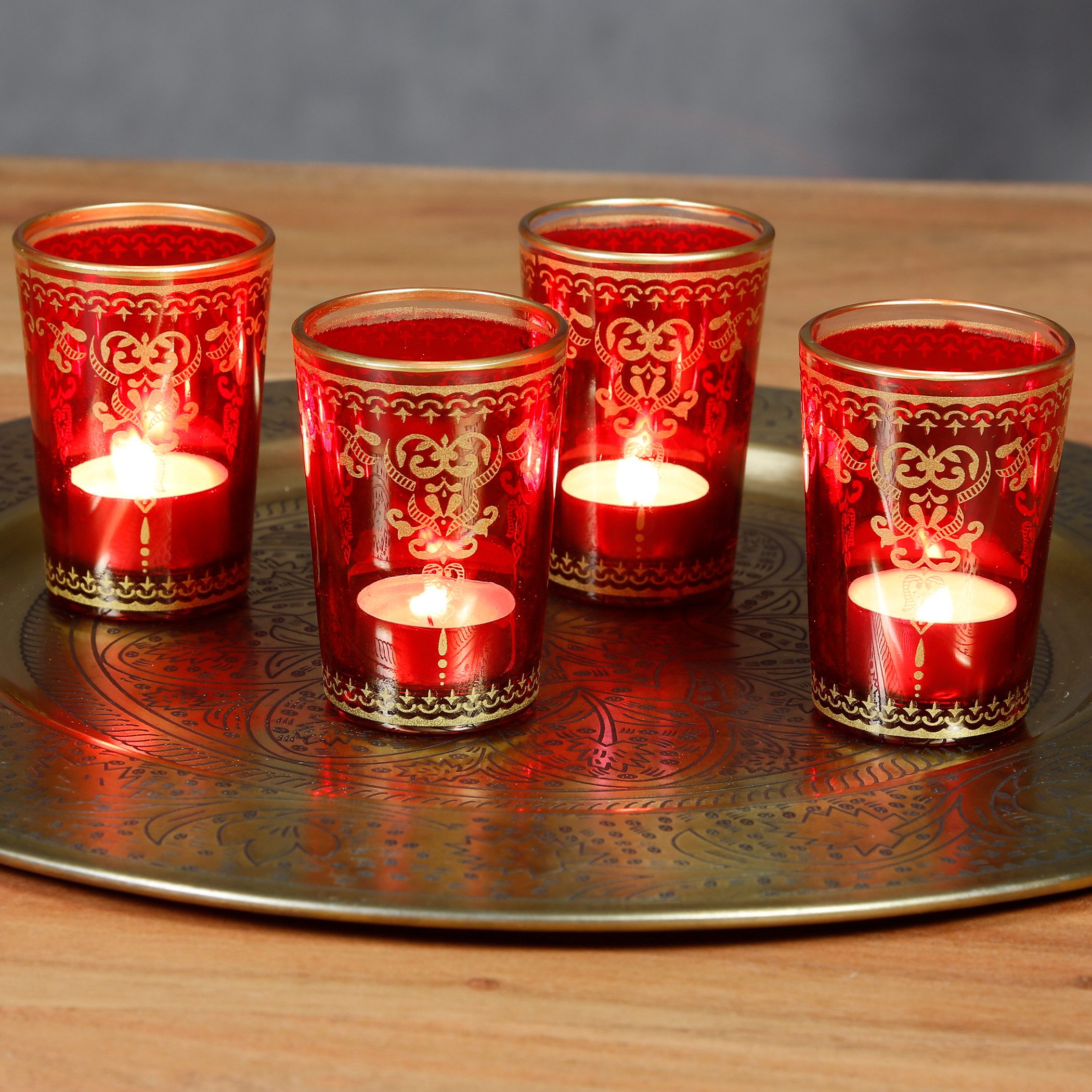 Mit den goldenen Verzierungen und der Roten Farbgebung bietet jedes Kerzenglas eine stilvolle Kerzen-Deko mit kerzenwachs, perfekt für Tischdekorationen Während Ramadan. Als DIY-Kerzenglas eignen sich die farbigen Gläser hervorragend für Teelichter oder zum Befüllen mit Kerzenwachs.