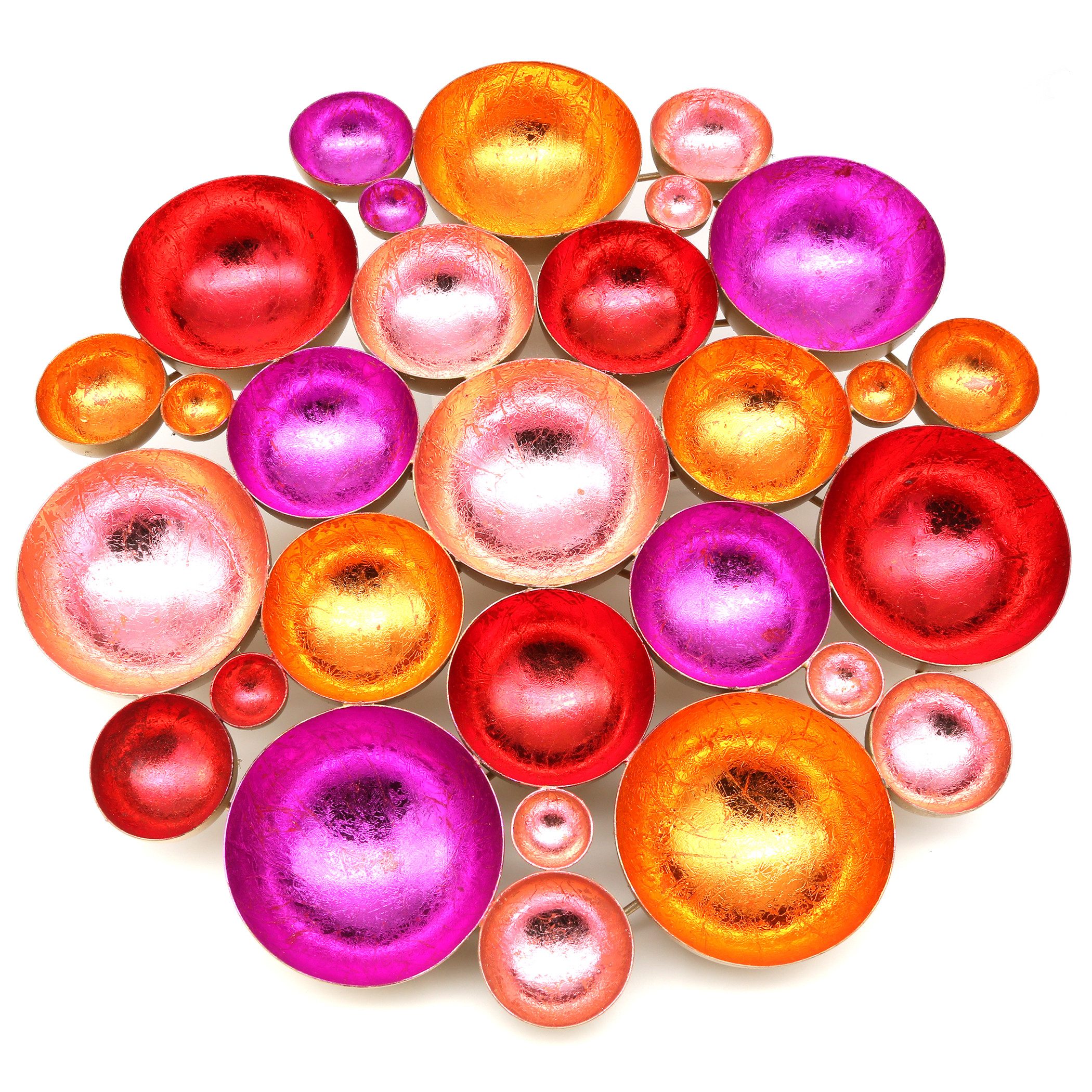 Blütenmeer aus Licht – Die handgefertigten Schalen in leuchtenden Farben sind zu einer wunderschönen Blume zusammengefügt und bringen eine einzigartige Lichtstimmung in dein Zuhause. Diese Dekoschale vereint kunstvolle Handarbeit und glamouröse Eleganz: Aus Metall gefertigt und innen in lebendigen Farben wie Gold, Rot, Pink, Rosa und Orange veredelt, reflektiert sie das Licht auf faszinierende Weise und schafft eine warme, einladende Atmosphäre. Dieser vielseitige Teelichthalter mit einem Durchmesser von 40 cm bietet Platz für bis zu 21 Teelichter und ist perfekt geeignet für den Adventskranz oder als Deko für Weihnachten. Er passt ideal auf Tische, ins Wohnzimmer, auf Sideboards oder Fensterbretter. Ob als Bonboniere, Tischdekoration oder kreative Geschenkidee – diese Schale setzt leuchtende Akzente und verleiht jedem Raum einen Hauch von Art Deco und Glamour. Perfekt geeignet für Vintage und Boho-Einrichtungsstile, passt der Teelichthalter sowohl zu festlichen Anlässen als auch zu alltäglichen Momenten. Er ist ebenso ideal zur Aufbewahrung von getrockneten Blüten, Gräsern, Früchten und Samen und bringt damit natürliche und dekorative Akzente in jeden Raum. Die kräftigen Farben und das glänzende Finish machen ihn zum Mittelpunkt jeder Tischdekoration. Ein Must-Have für alle, die eine besondere Dekoration lieben! Material: Metall Farben: Innen Rot, Pink, Rosa, Orange. Außen Gold. Maße: Durchmesser 40 cm, Höhe 5 cm Kunsthandwerk: Es sind möglicherweise kleine Unterschiede in Farbe und Form vorhanden. Diese Details unterstreichen die Authentizität und die Qualität echter Handarbeit. Hast du Fragen? Wir helfen dir gerne vor und nach dem Kauf – kontaktiere uns einfach.