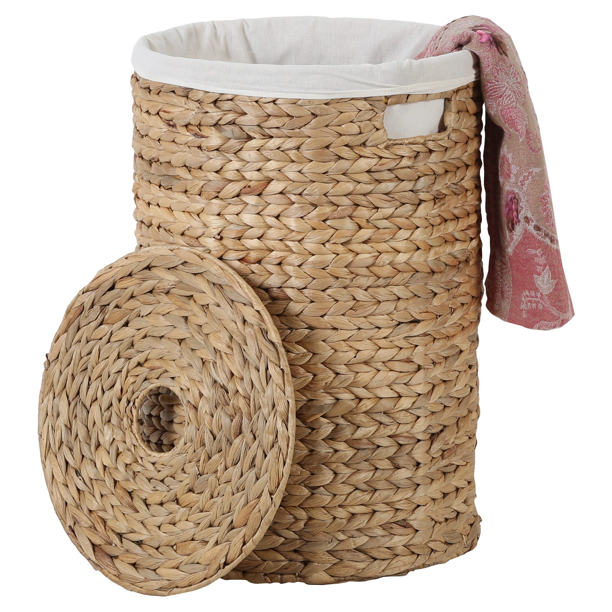 Dank seiner praktischen Maße – 50 cm Höhe und 33 cm Durchmesser – eignet sich der Korb perfekt zur Aufbewahrung von Kleidung, Büchern, Kosmetik, Obst oder Gemüse. Der integrierte Deckel sorgt für ein sauberes und aufgeräumtes Erscheinungsbild. Die warme Naturfarbe und die runde Form machen ihn zu einem stilvollen Wohnaccessoire, das in jeden Raum passt.