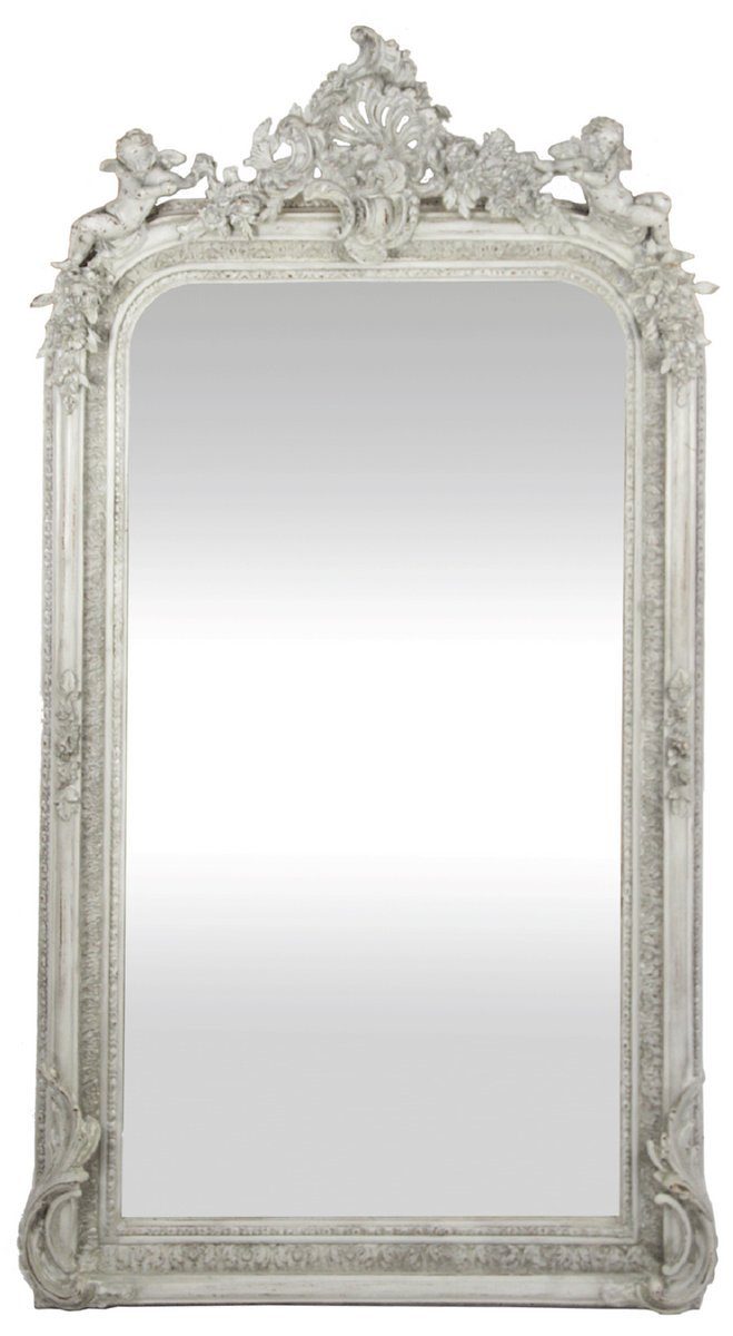 Prunkvoller Barock Wandspiegel mit wunderschönen Verzierungen und dekorativen Engelsfiguren von Casa Padrino