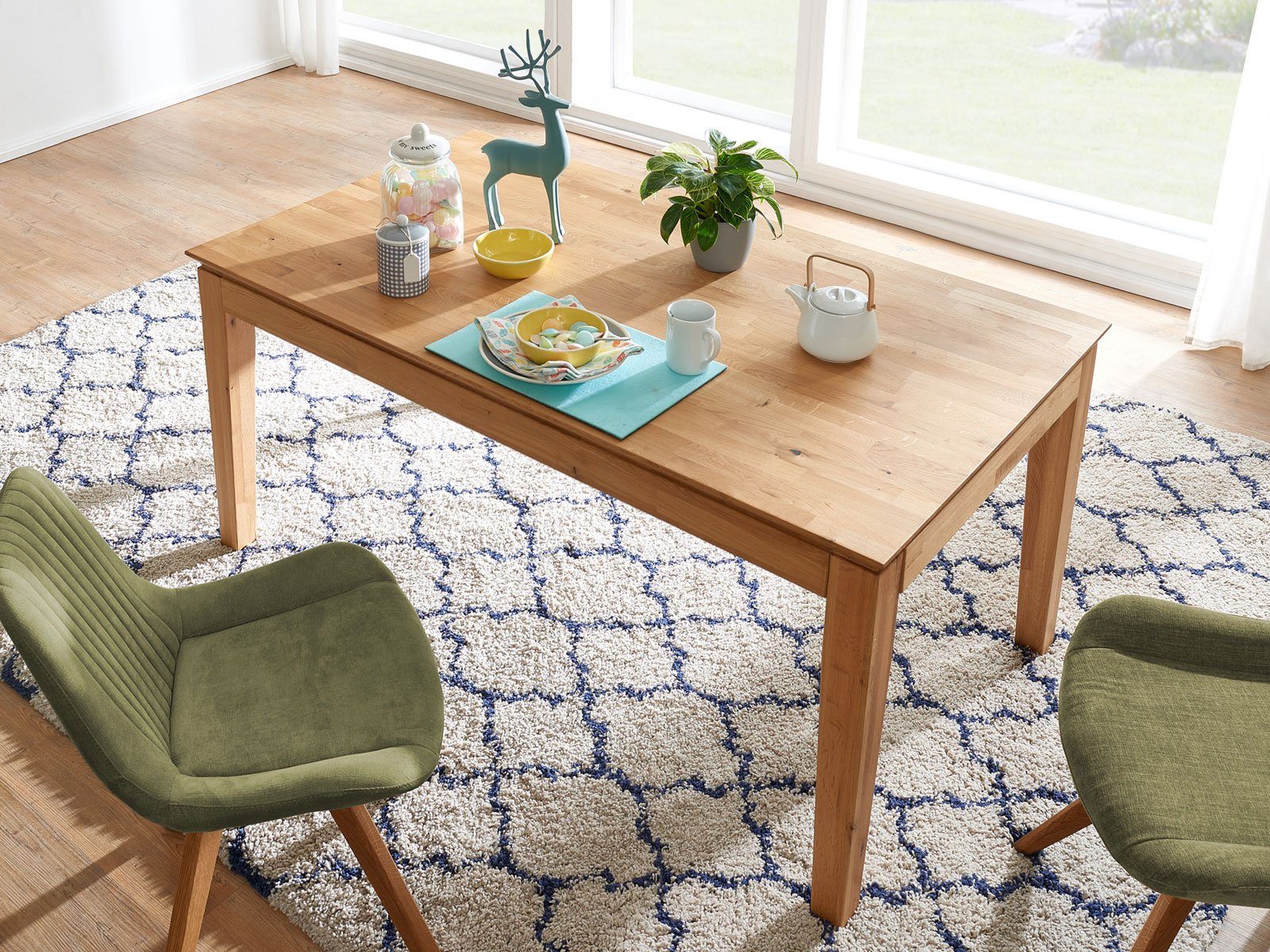 Ein besonderes Highlight dieses Esstisches ist der Butterfly-Auszug. Dieser ermöglicht es Ihnen, den Tisch bei Bedarf ganz einfach zu vergrößern und zusätzlichen Platz zu schaffen. Der Auszug funktioniert dabei reibungslos und lässt sich anschließend genauso leicht wieder verstauen. Die geraden Tischbeine geben dem Esstisch eine klare und zeitlose Ausstrahlung, die zu verschiedensten Einrichtungsstilen passt. Egal ob im klassischen Landhausstil, im modernen Industrie-Look oder im skandinavischen Design – dieser Esstisch fügt sich harmonisch in jede Einrichtung ein.
