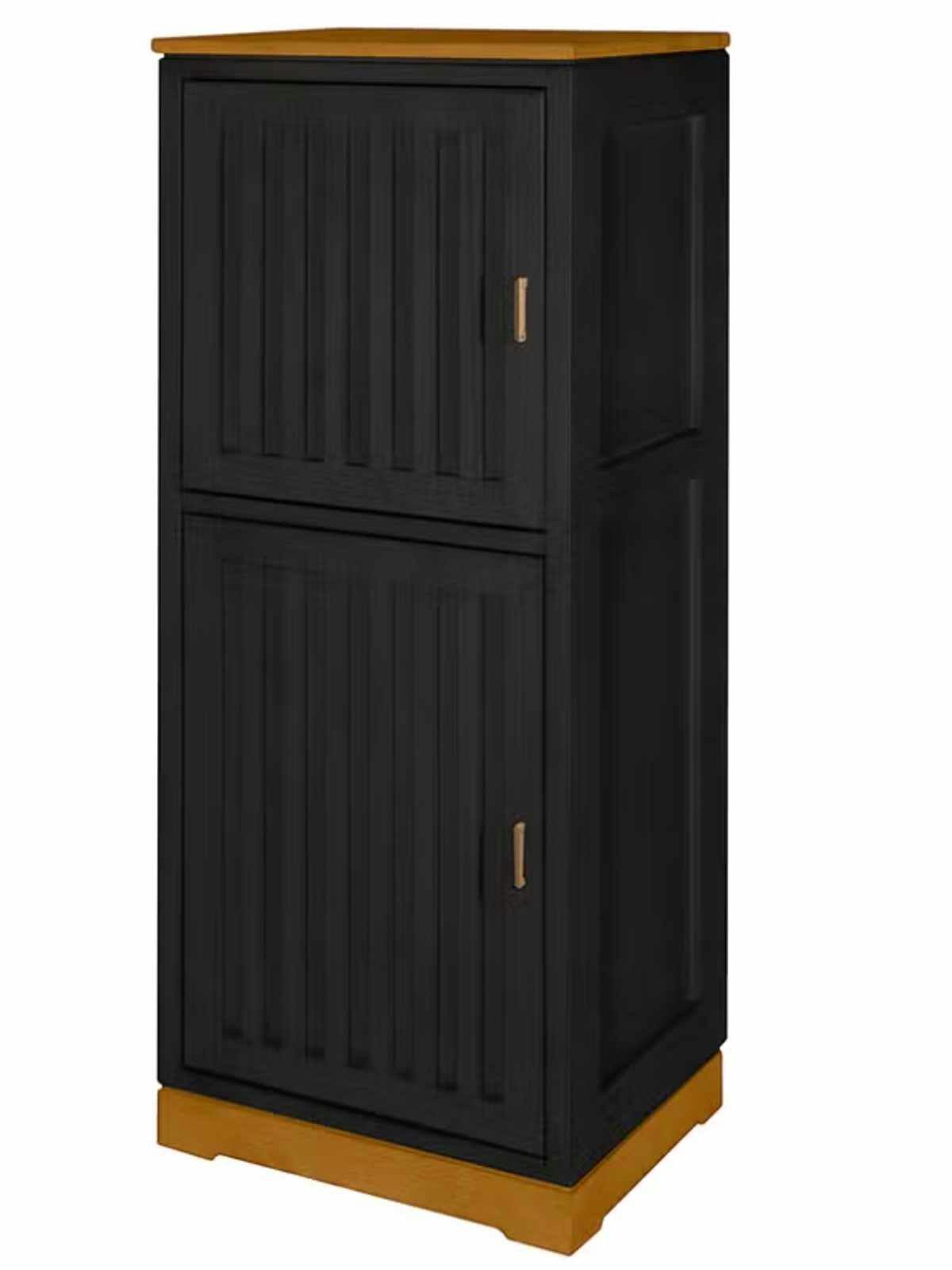 hochwertige Türen mit geriffelten Füllungen, dahinter je ein Holzeinlegeboden
