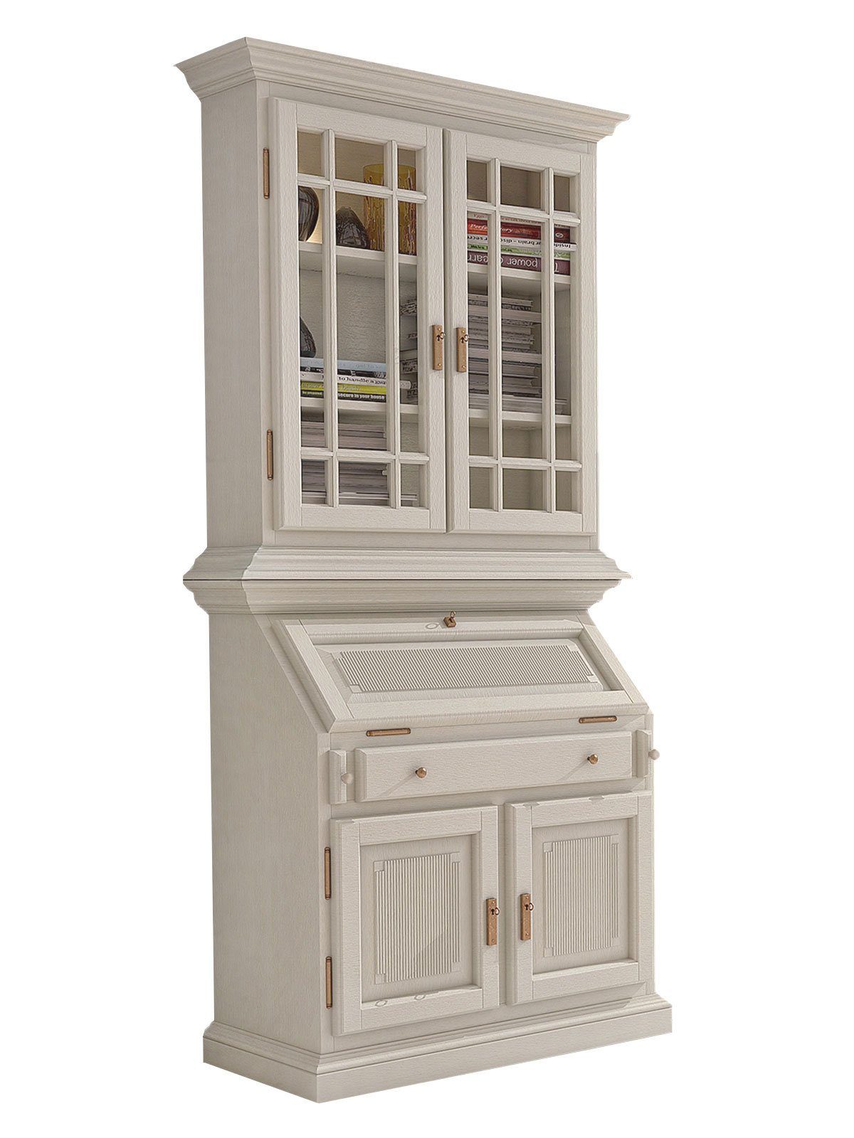 oben: Aufsatzschrank mit 2 Glastüren mit Holzsprossen, dahinter 2 höhenverstellbare Holzeinlegeböden (B 85 cm, T 20 cm)