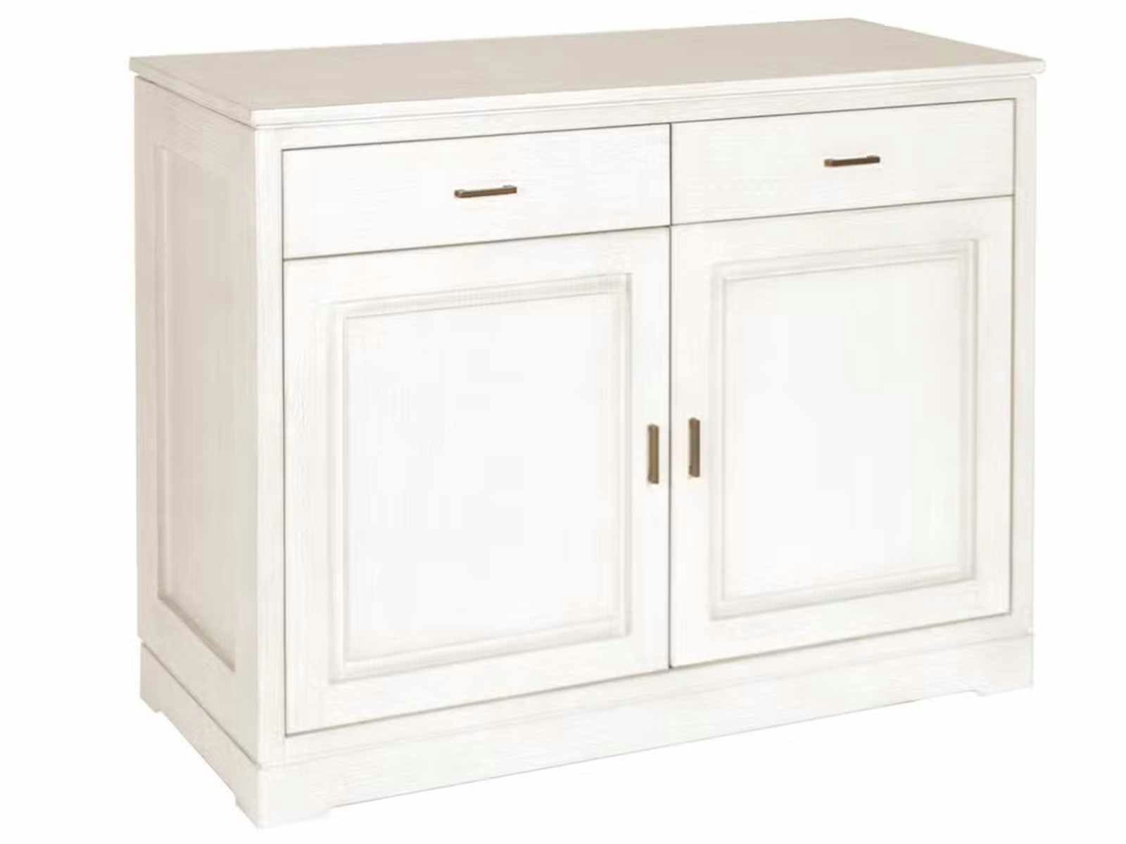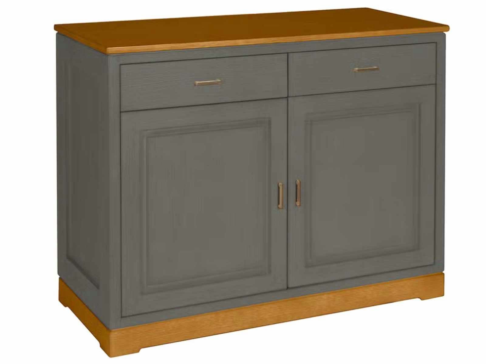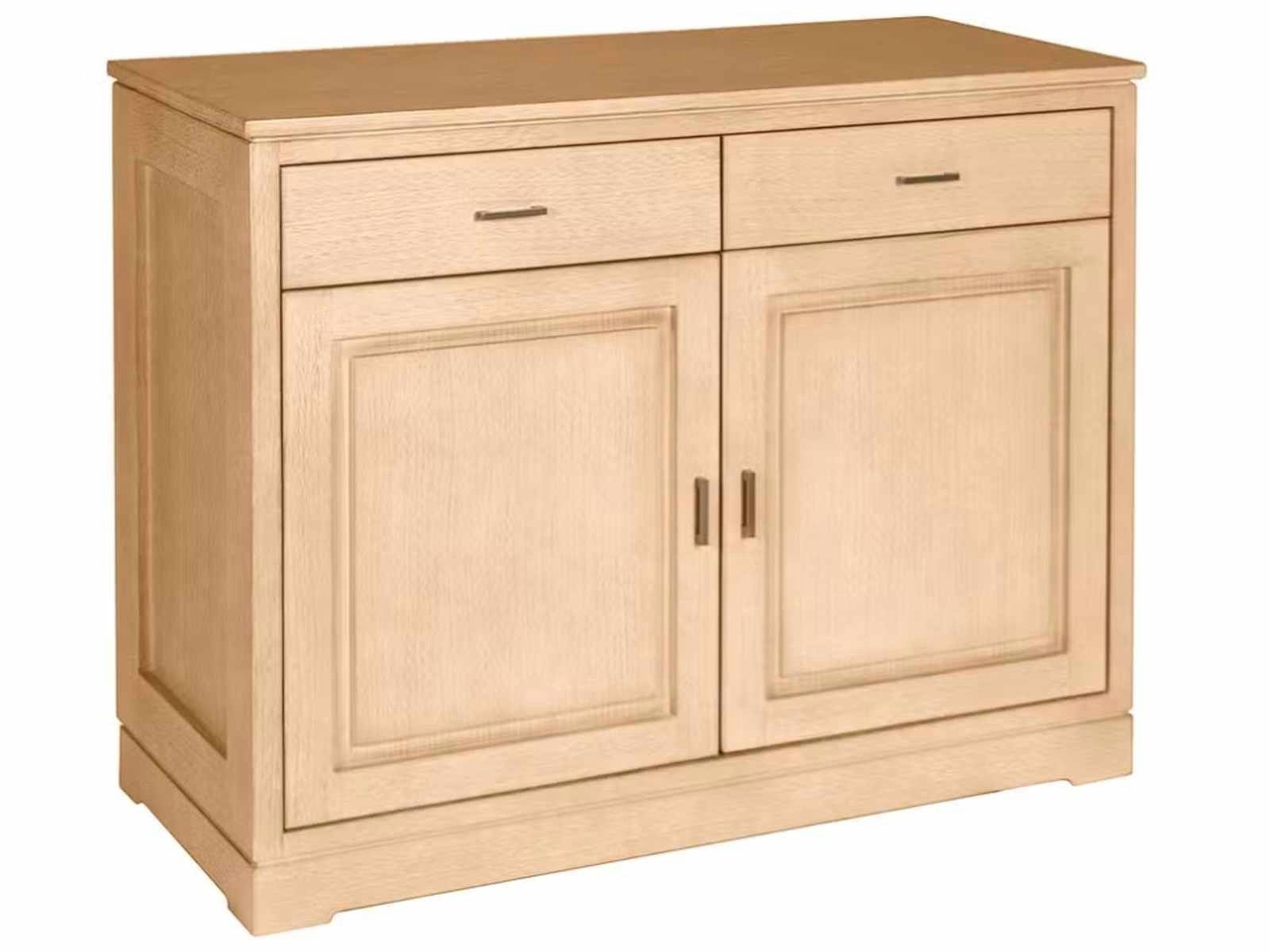 hochwertige Türen mit glatter Füllung, dahinter ein Holzeinlegeboden, oben 2 Schubladen mit glatten Fronten