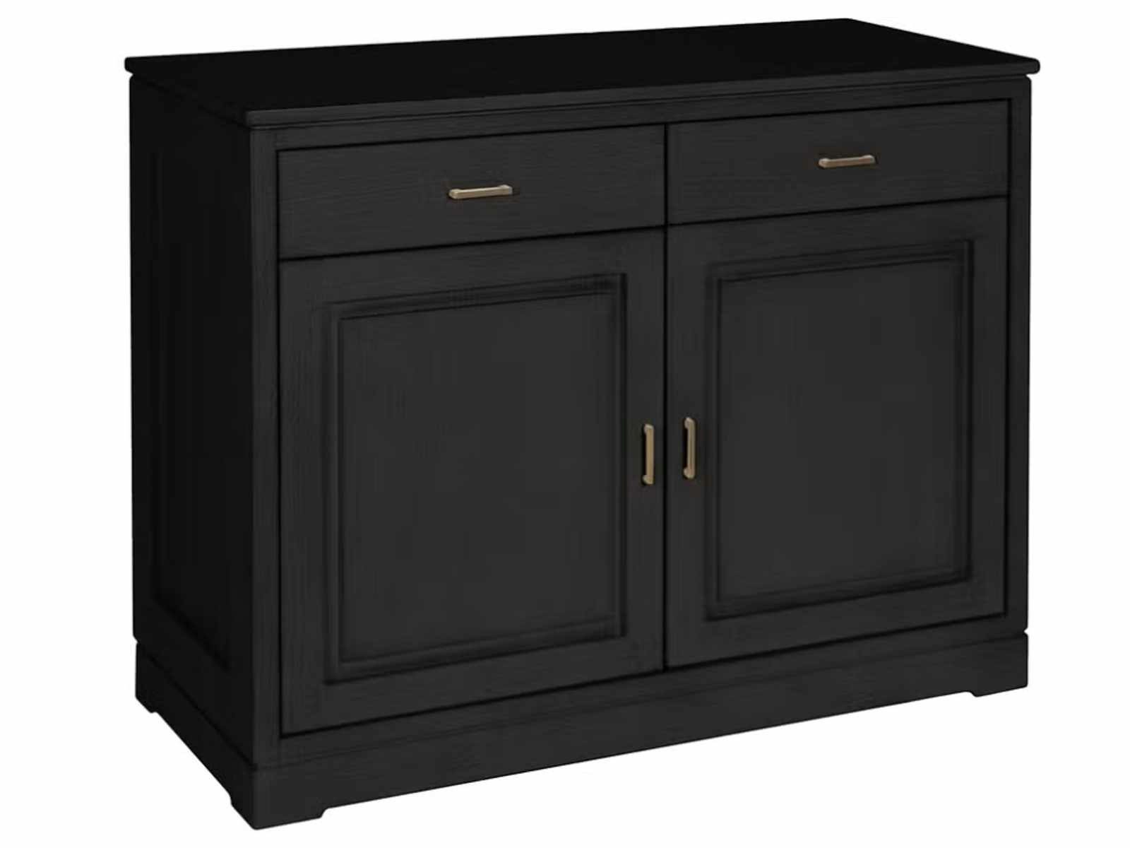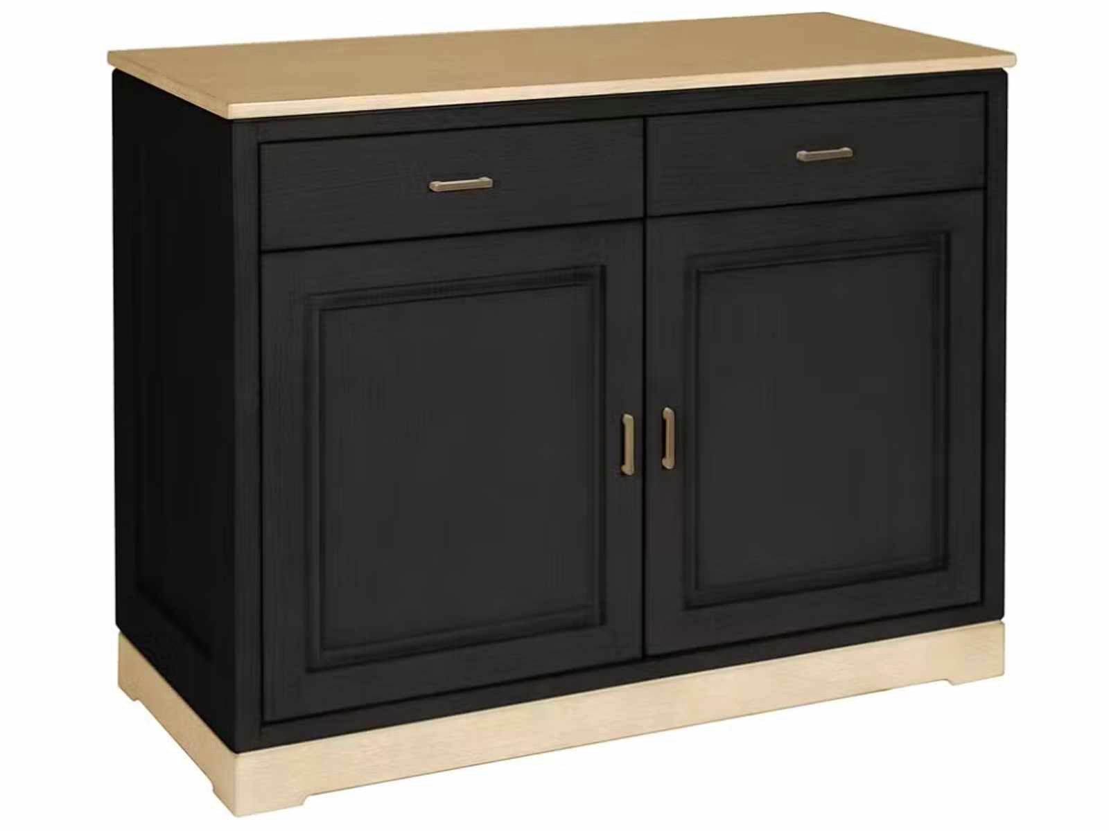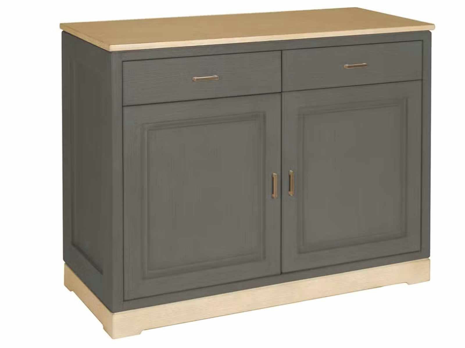hochwertige Türen mit glatter Füllung, dahinter ein Holzeinlegeboden, oben 2 Schubladen mit glatten Fronten