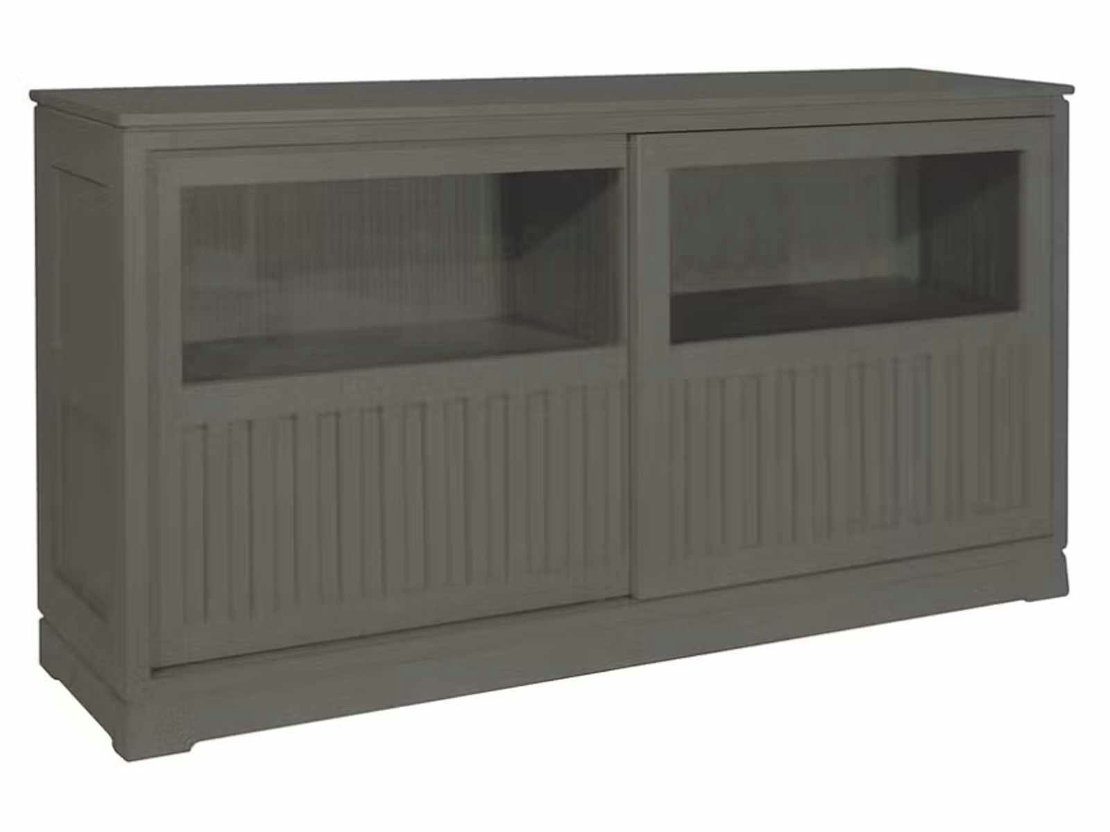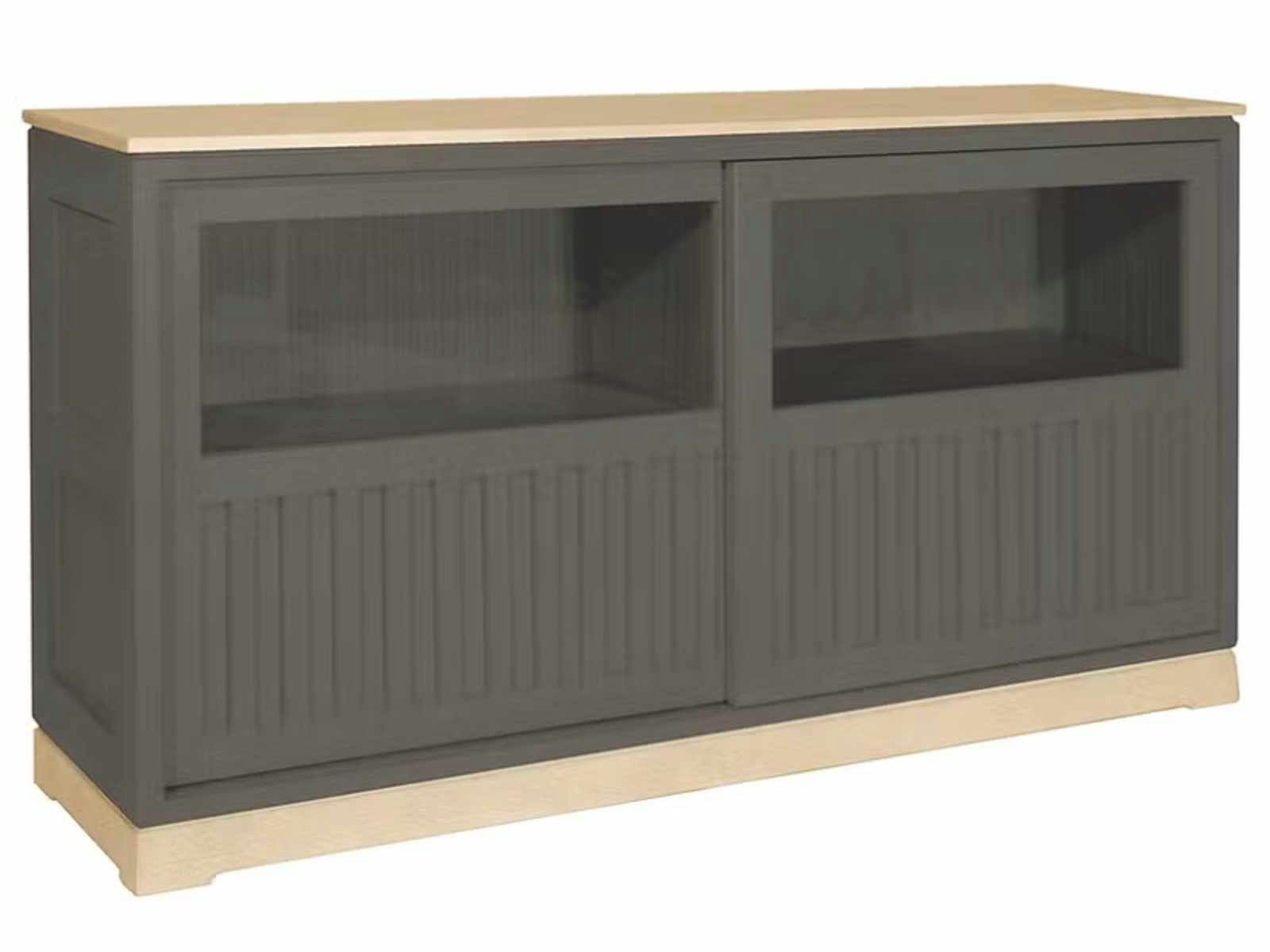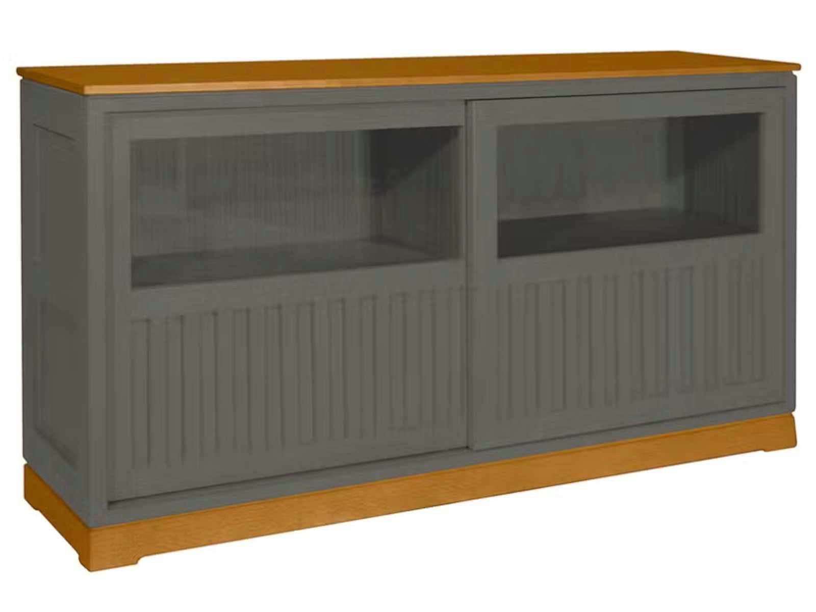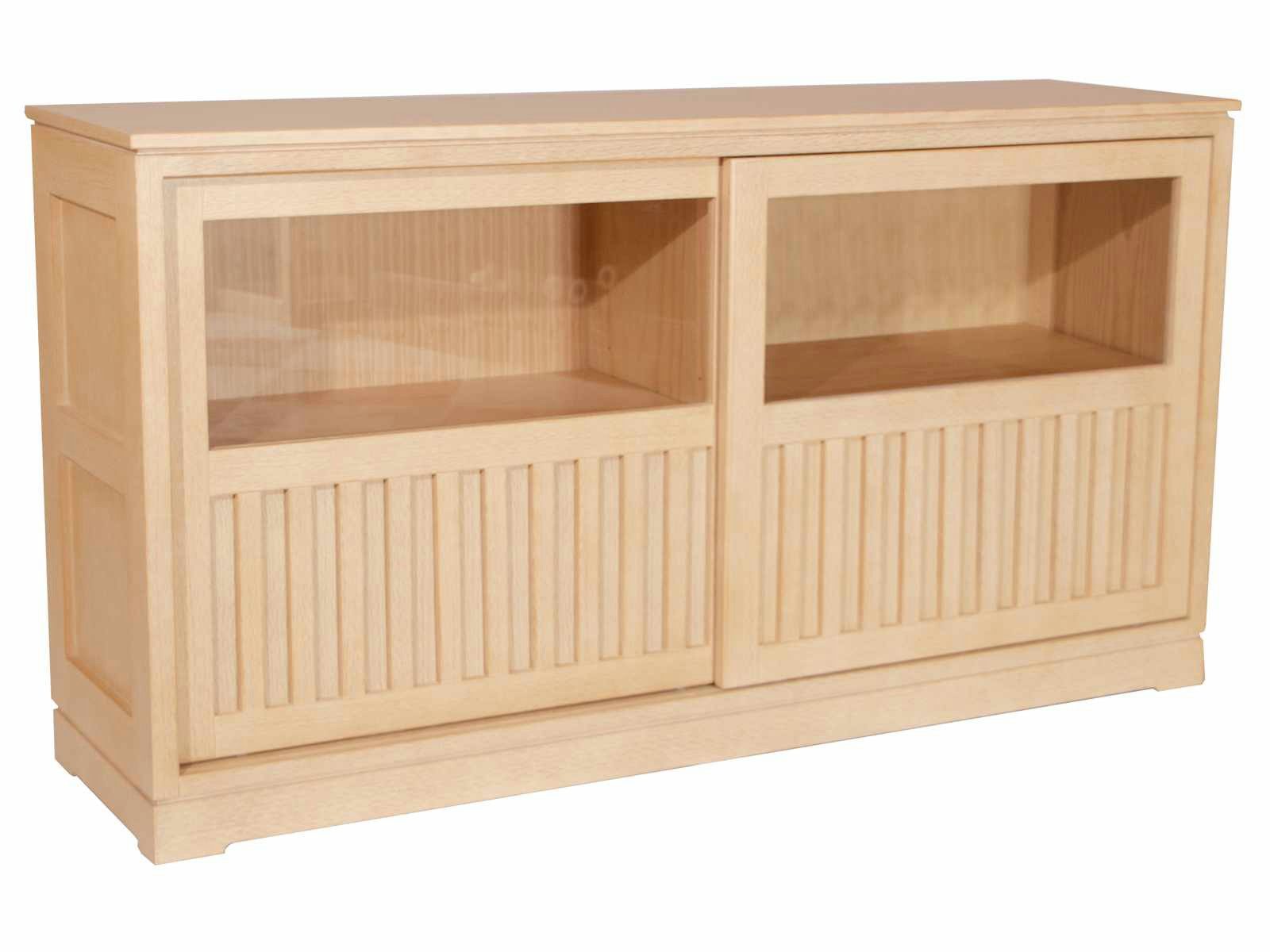 links und rechts hochwertige Schiebetüren mit geriffelter Füllung, dahinter je ein Holzeinlegeboden