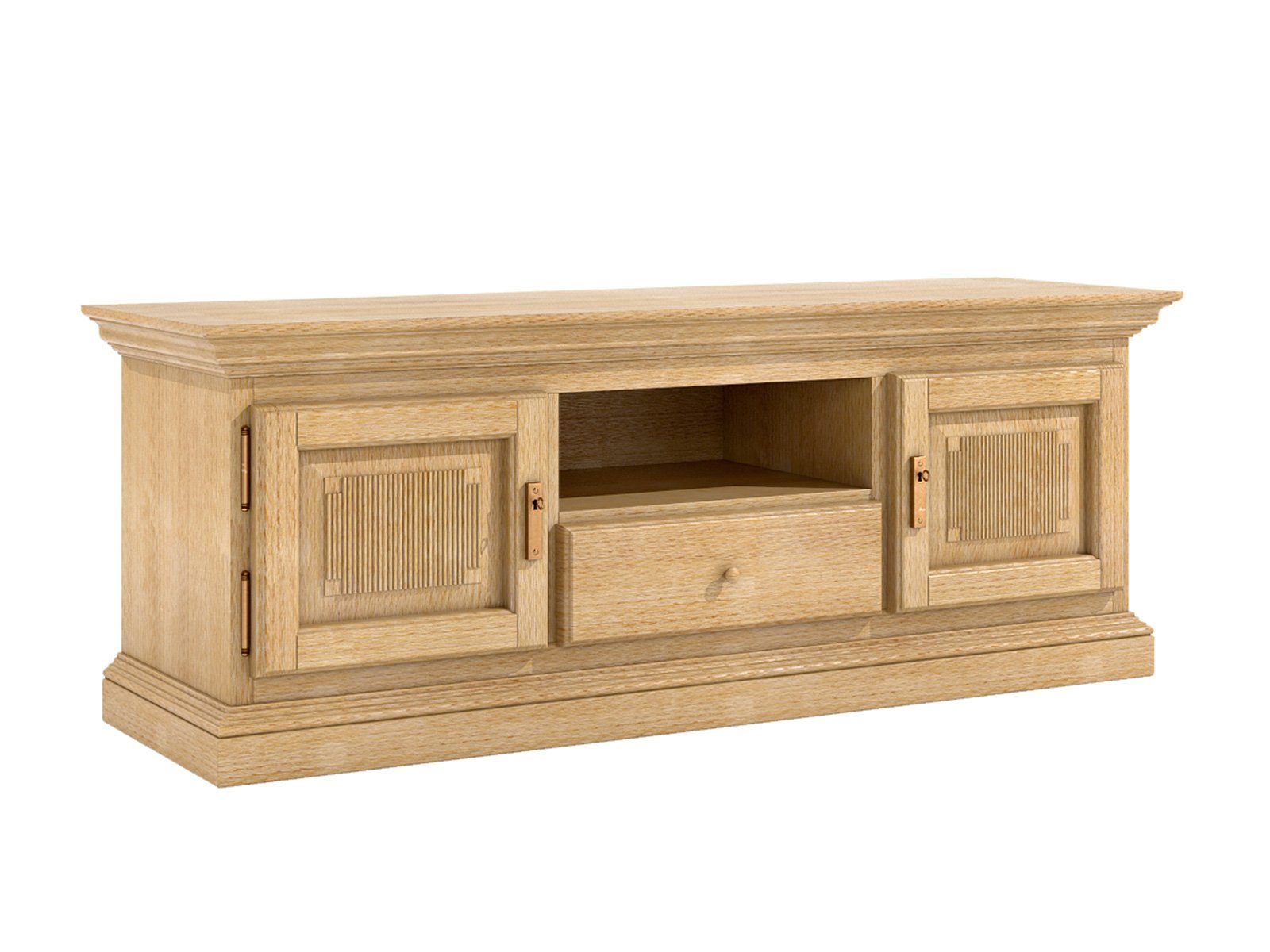 rechts und links: je 1 Holztür mit Riffelfüllung, hinter der Tür je ein Fachboden variabel auf drei Höhen