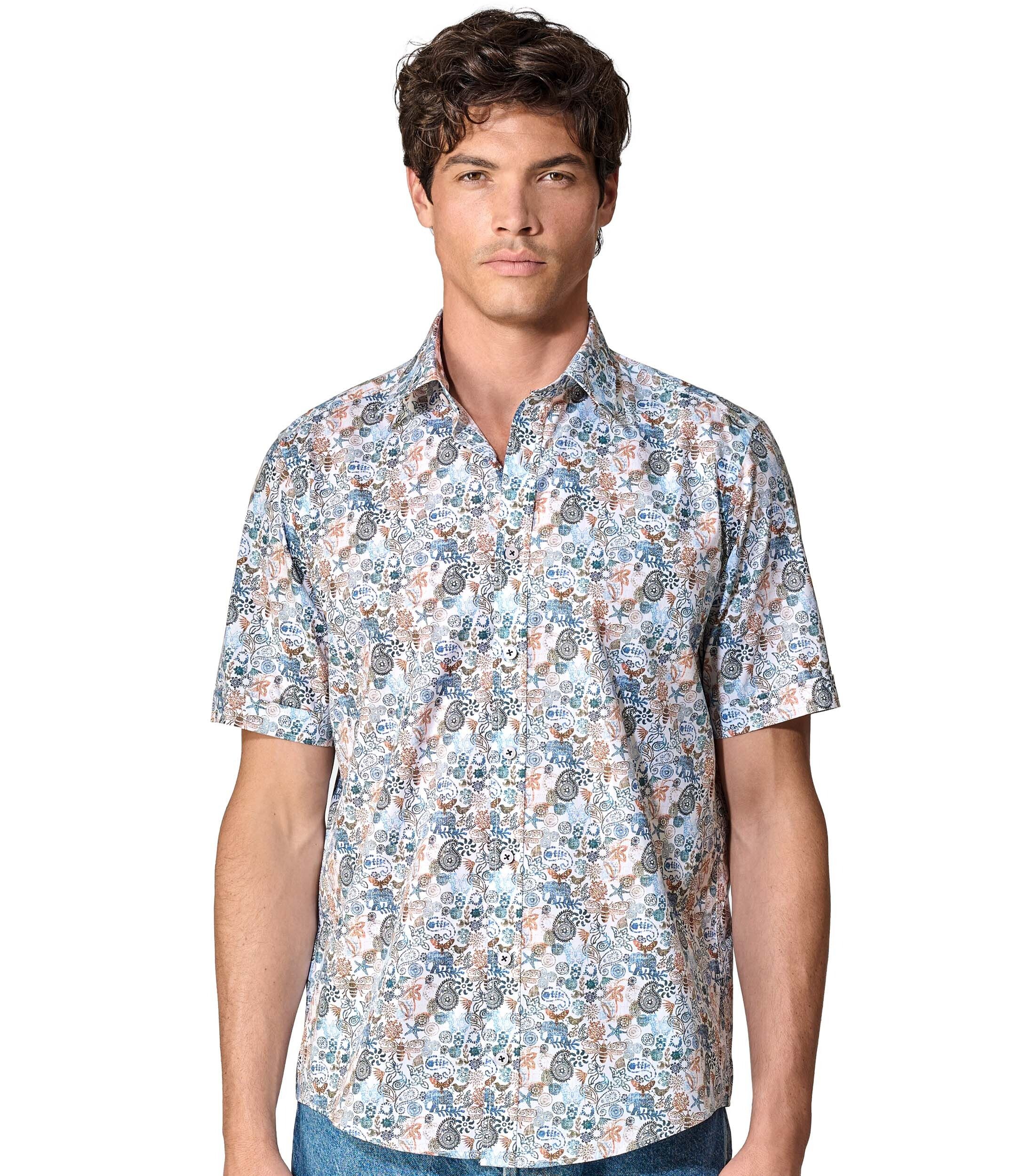 Eigenschaften: Easy Care Herstellerpassform: Casual Fit Materialzusammensetzung: 100 % Baumwolle Modelsize: Model trägt Размер L und ist 190 cm groß Kragenform: Kent-Kragen Muster: Print Armlänge: Kurzarm Produktart: Freizeithemd Kurzarm Pflegehinweise: Schonwaschgang 40 °C, nicht bleichen, Nicht im Wäschetrockner trocknen, Mäßig heiß bügeln, Professionelle Trockenreinigung normaler Prozess, Professionelle Nassreinigung schonender Prozess Produktvariante: Druck Stil: basic