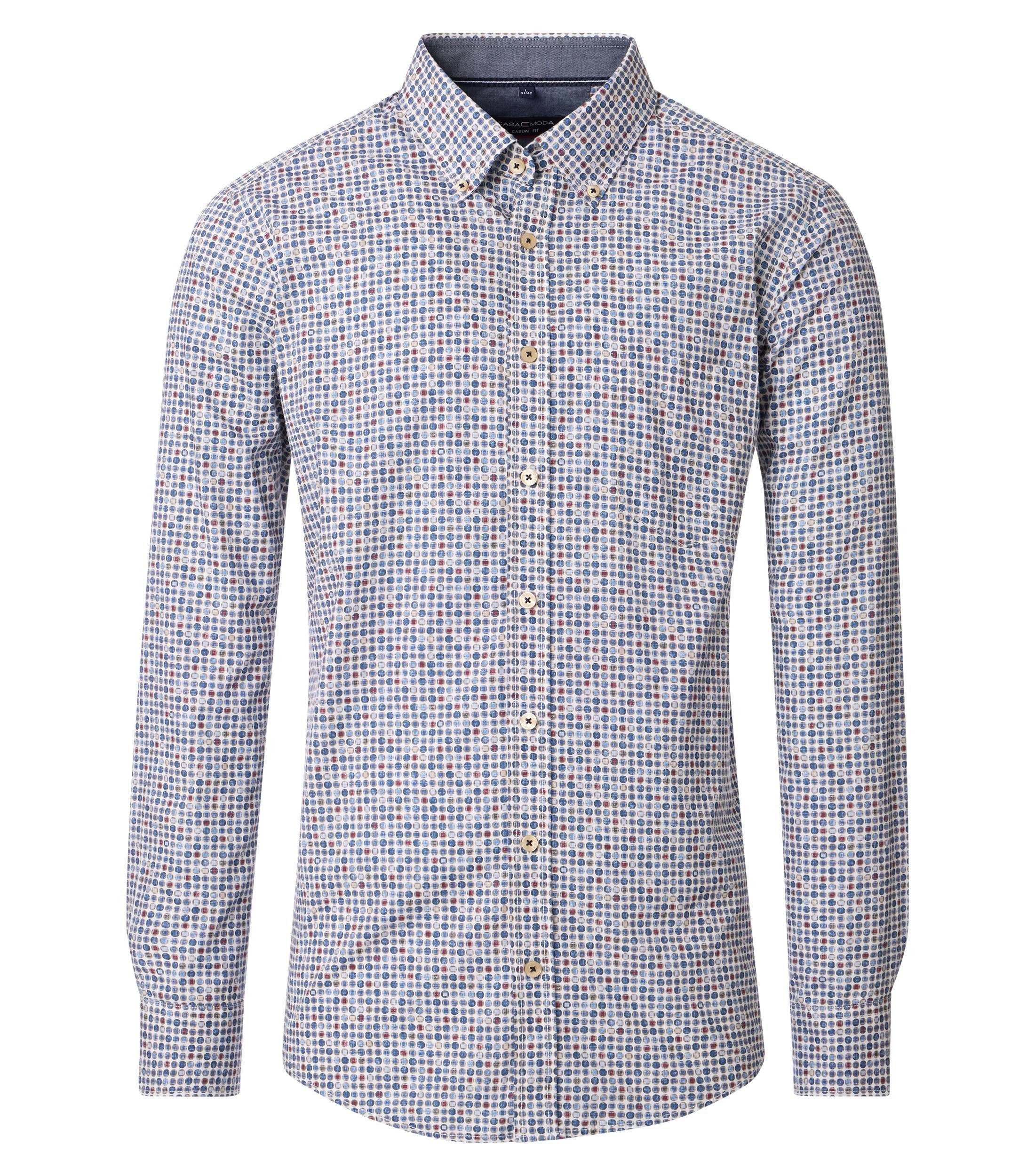 Eigenschaften: Easy Care Herstellerpassform: Casual Fit Materialzusammensetzung: 100 % Baumwolle Kragenform: Button-Down-Kragen Muster: Print Armlänge: Langarm Produktart: Freizeithemd Pflegehinweise: Schonwaschgang 40 °C, nicht bleichen, Nicht im Wäschetrockner trocknen, Mäßig heiß bügeln, Professionelle Trockenreinigung normaler Prozess, Professionelle Nassreinigung schonender Prozess Produktvariante: Popeline Stil: Basic Taschen: Mit Brusttasche