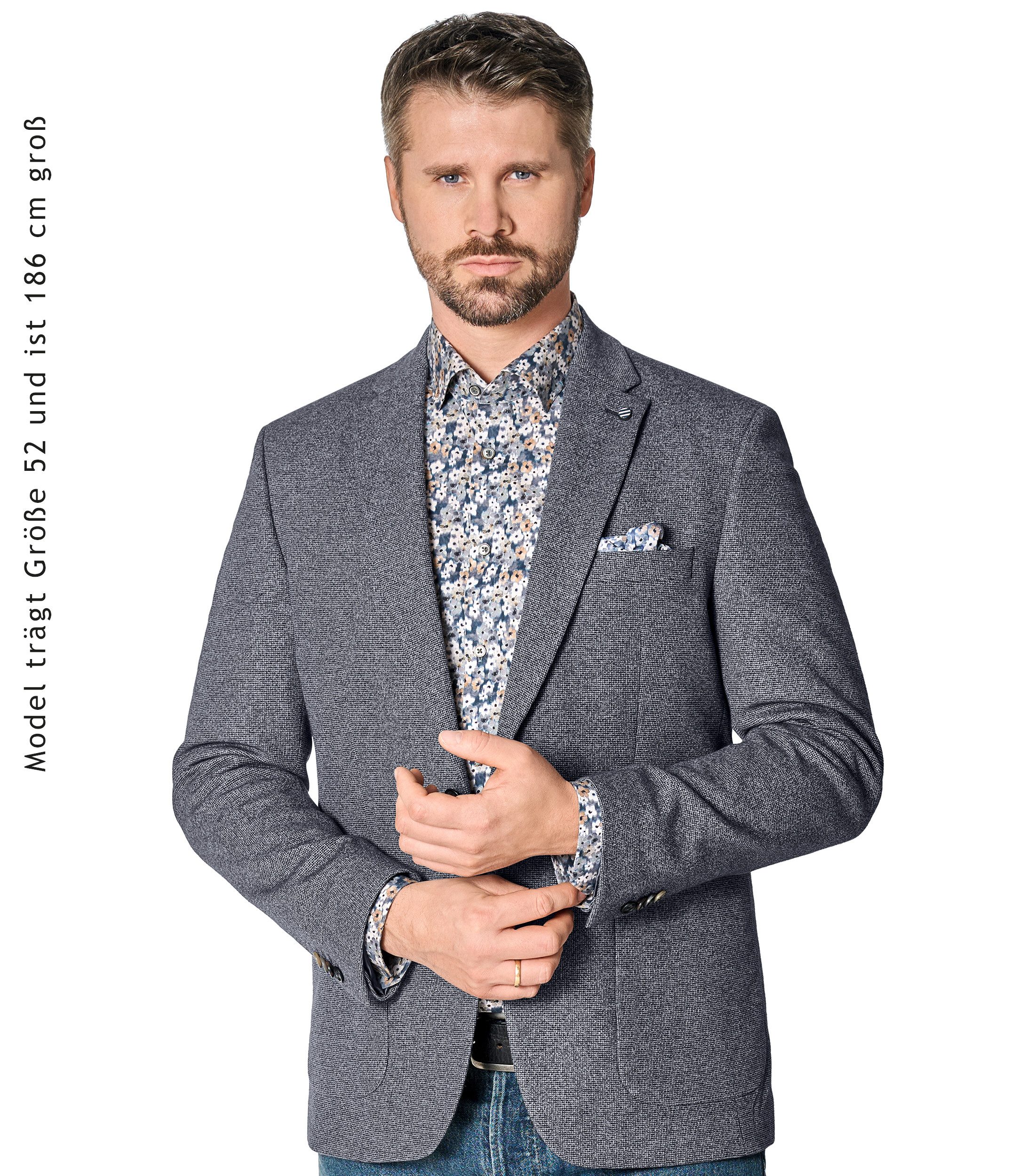 Dieses Sakko bietet einen hohen Tragekomfort und sorgt für eine moderne Bi-Color-Optik. Mit seinem modischen Design und trendigem Besatz ist es vielseitig einsetzbar und lässt sich perfekt mit unseren passenden Hemden kombinieren. Ob mit einer Chinohose für einen smarten Look oder lässig kombiniert mit einer Jeans - dieses Sakko ist ein absolutes Must-have für jeden Kleiderschrank.