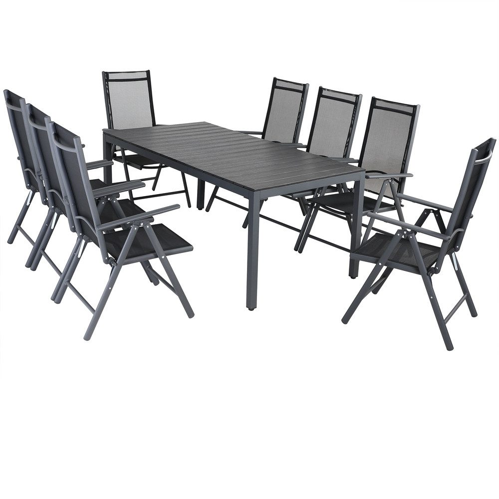 Exklusive, 9 tlg. Aluminium Gartengarnitur »Bern« mit WPC Tischplatte und 8 klappbaren und in 8 Positionen verstellbaren Hochlehnern.